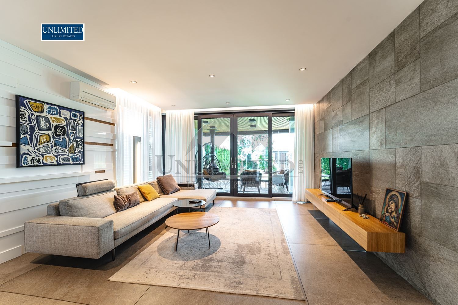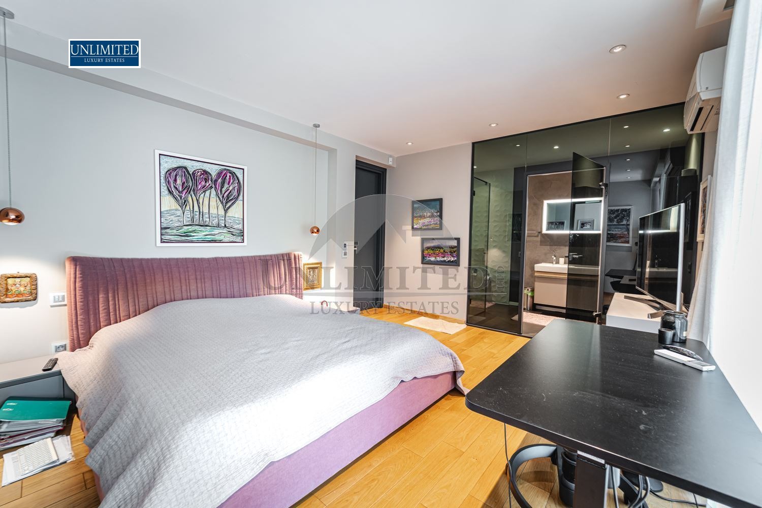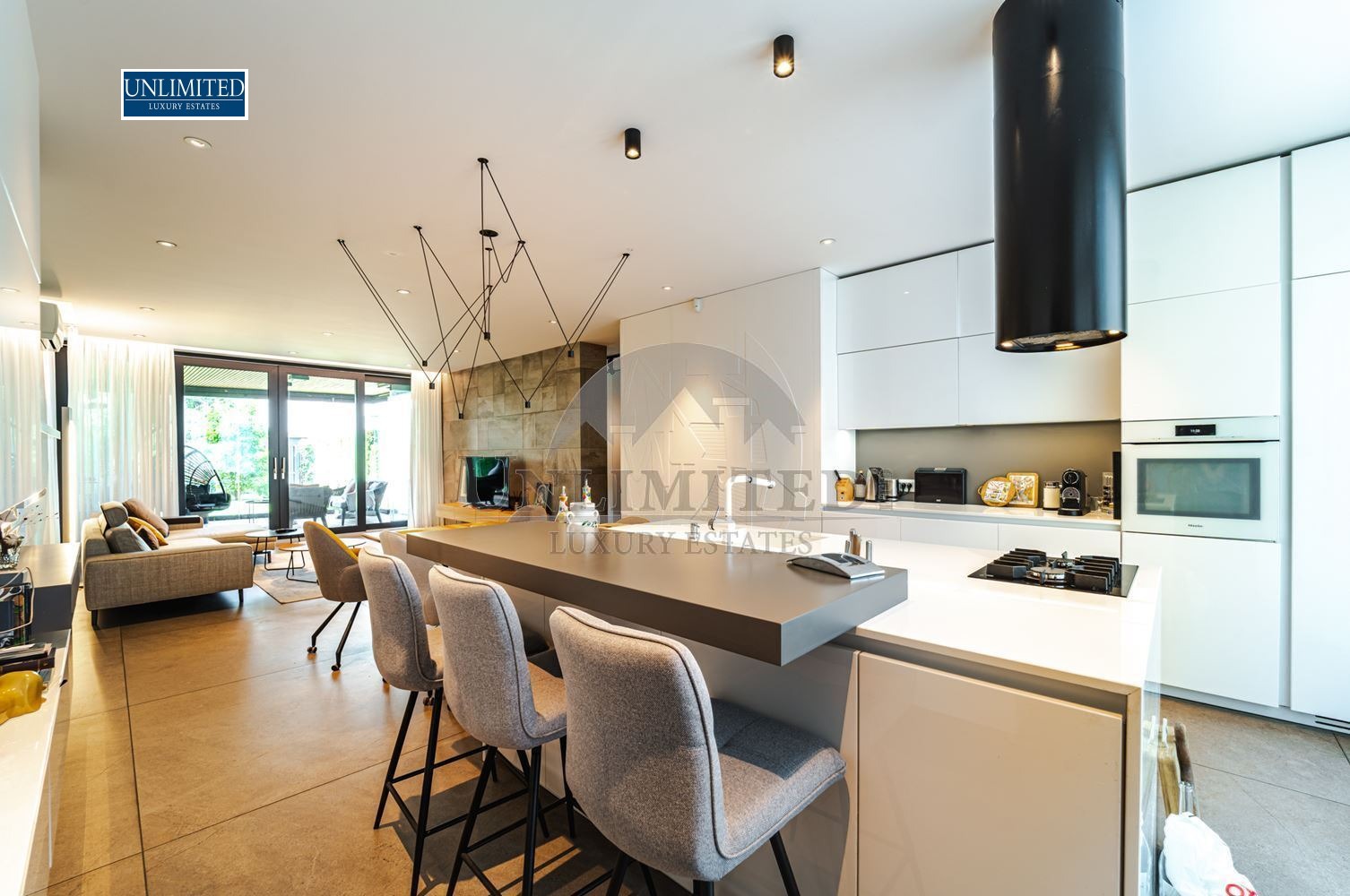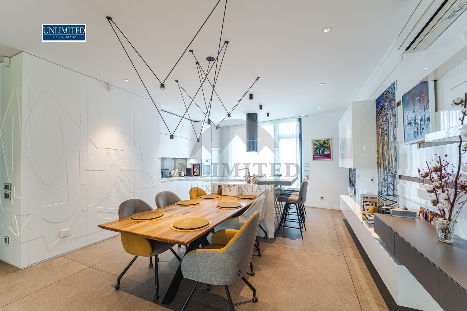 The interior showcases premium finishes, custom furniture, designer lighting, and curated decorative accents.