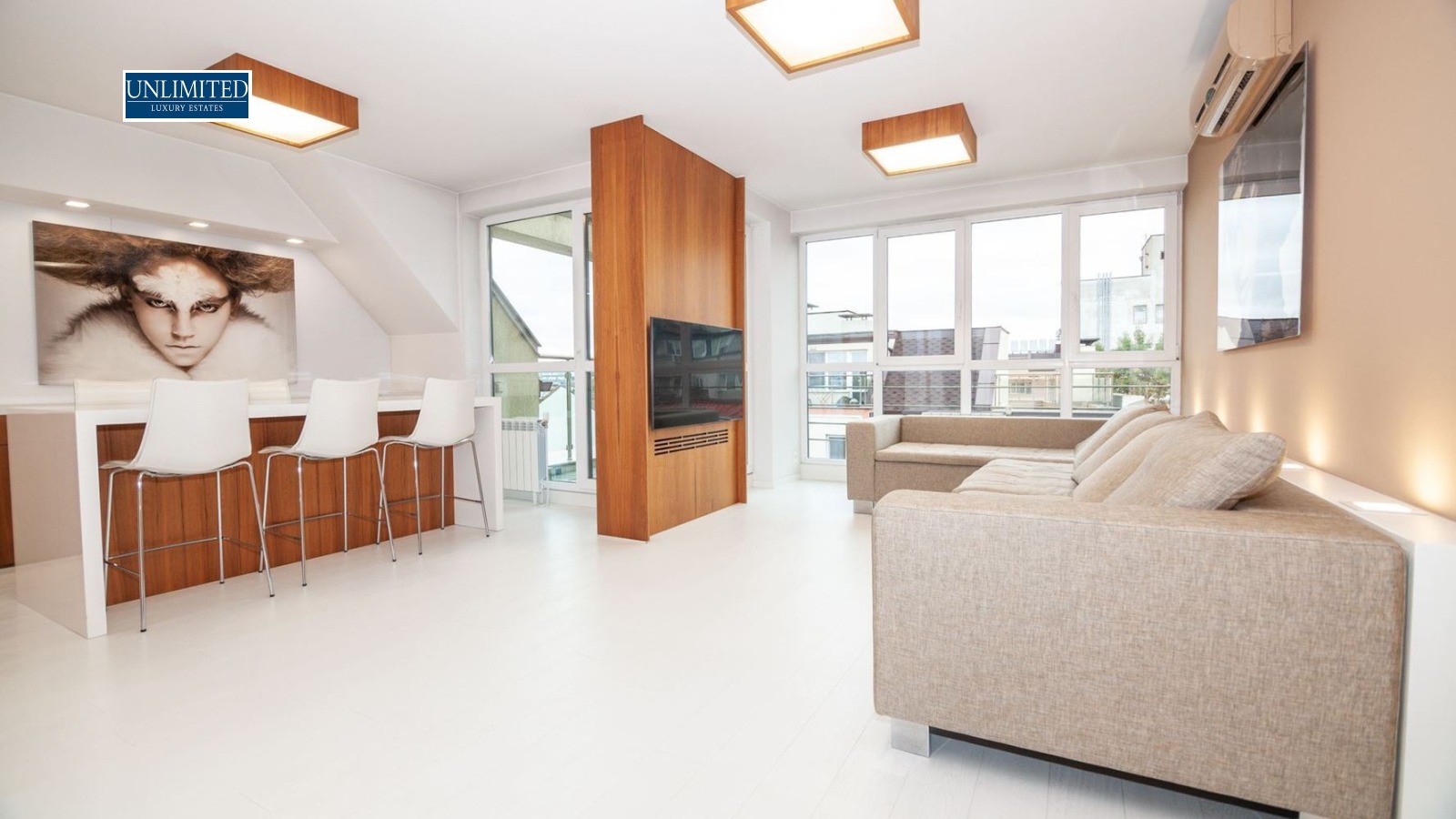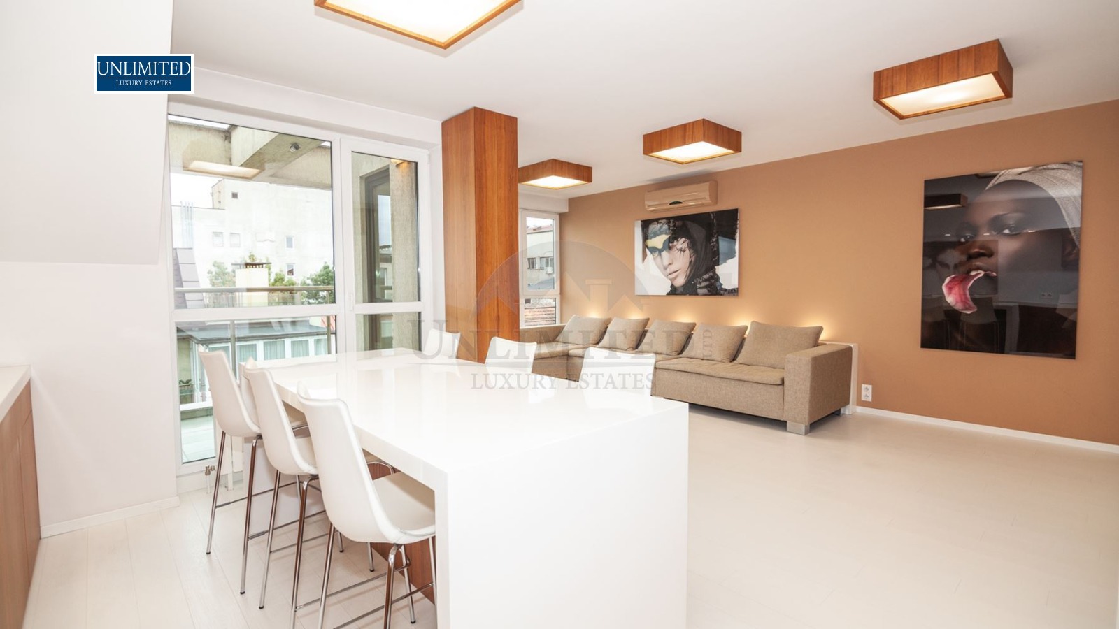Просторен, много луксозно обзаведен апартамент в идеалния център на града, в нова сграда, с подземно паркомясто (и опция за наемане на второ). Намира се на целия седми етаж и има прекрасни панорамни гледки. Състои се от 180м2, разпределени както следва: хол с кухня (южно изложение), кабинет (южно изложение), детска/гостна спалня с две отделни легла (северно изложение), огромна спалня с фитнес (северно изложение), три бани и тоалетни и склад/мокро помещение, като към всяка стая има тераса. Дограма Саламандър с петорен стъклопакет с шумоизолационна мембрана осигурява изключителна тишина от външните шумове. Всички врати са от фирма Солид (включително и интериорните) и са с много високо ниво на шумоизолация. Отоплението и топлата вода са на ТЕЦ, има климатици както и бойлер, в случай на аварии на топлата вода. Апартаментът е оборудван с високоскоростен оптичен интернет и IPTV от Виваком (ЕОН) със 170 канала и видеотека. Всеки един детайл е проектиран да осигури максимален комфорт: прозорци от пода до тавана осигуряват много светлина, легло в основната спалня 2х2 метра, подгряване на огледалата в баните, за да не се изпотяват при вземане на душ, димиращи се светлини, висококачествени смесители от Grohe, много луксозен и удобен диван от датския лидер в луксозните мебели - BoConcept, електронно резе на вратите. Апартаментът се намира на метри от метростанция, спирки на градския транспорт, Billa, Lidl, Kaufland, ресторанти, йога стидуо. Изключително комуникативно и централно място.