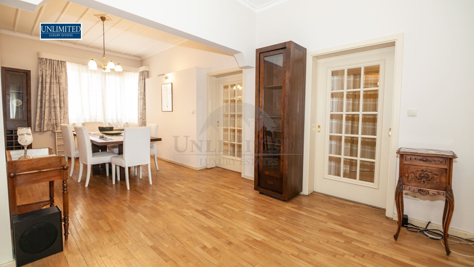 Luxury apartment in a building with perfect common areas next to ' Alexander Nevski' Cathedral. It consists as follows : hallway, spacious living area, dining room, separate fully equipped kitchen, master bedroom with walk- in closet, 2 bedrooms, bathroom with bath - tub + WC, guest toilet, storage. Central heating. Security system.Air con. Basment..