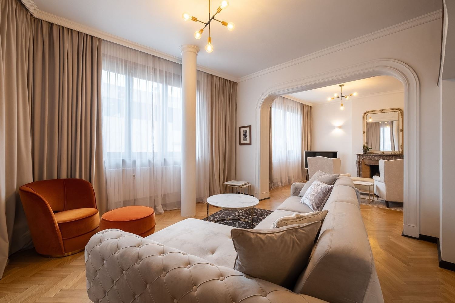 Уникален апартамент в аристократичната част на София , разкриващ невероятни гледки към паметникът на цар Освободител, сградата на Народното събрание и Храм-паметникът Св. Александър Невски, както и фасадата на Софийския университет.