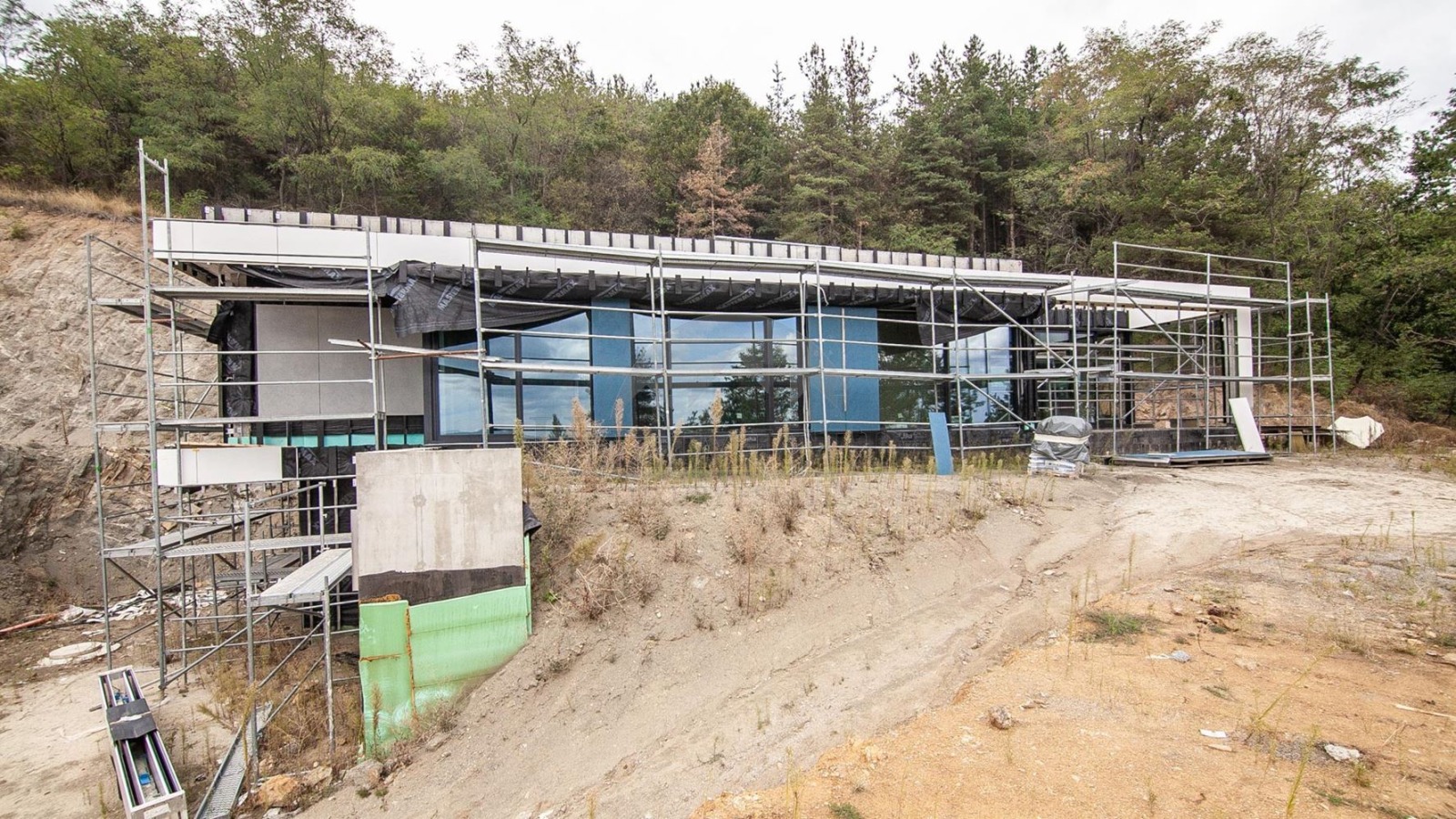 Къщата е построена в модерен минималистичен стил, с плоскък покрив и светла височина на помещенията 3.05 м., както и 10 години пълна гаранция на всички строително-монтажни работи.