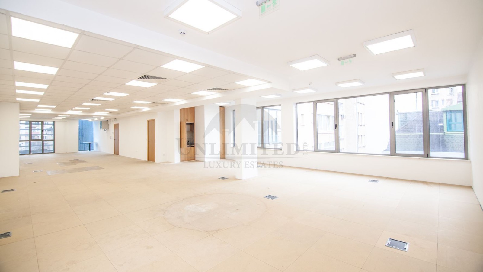 The office has opening windows, a double floor, fiber optic connectivity, as well as emergency power to the building using its own diesel generator.