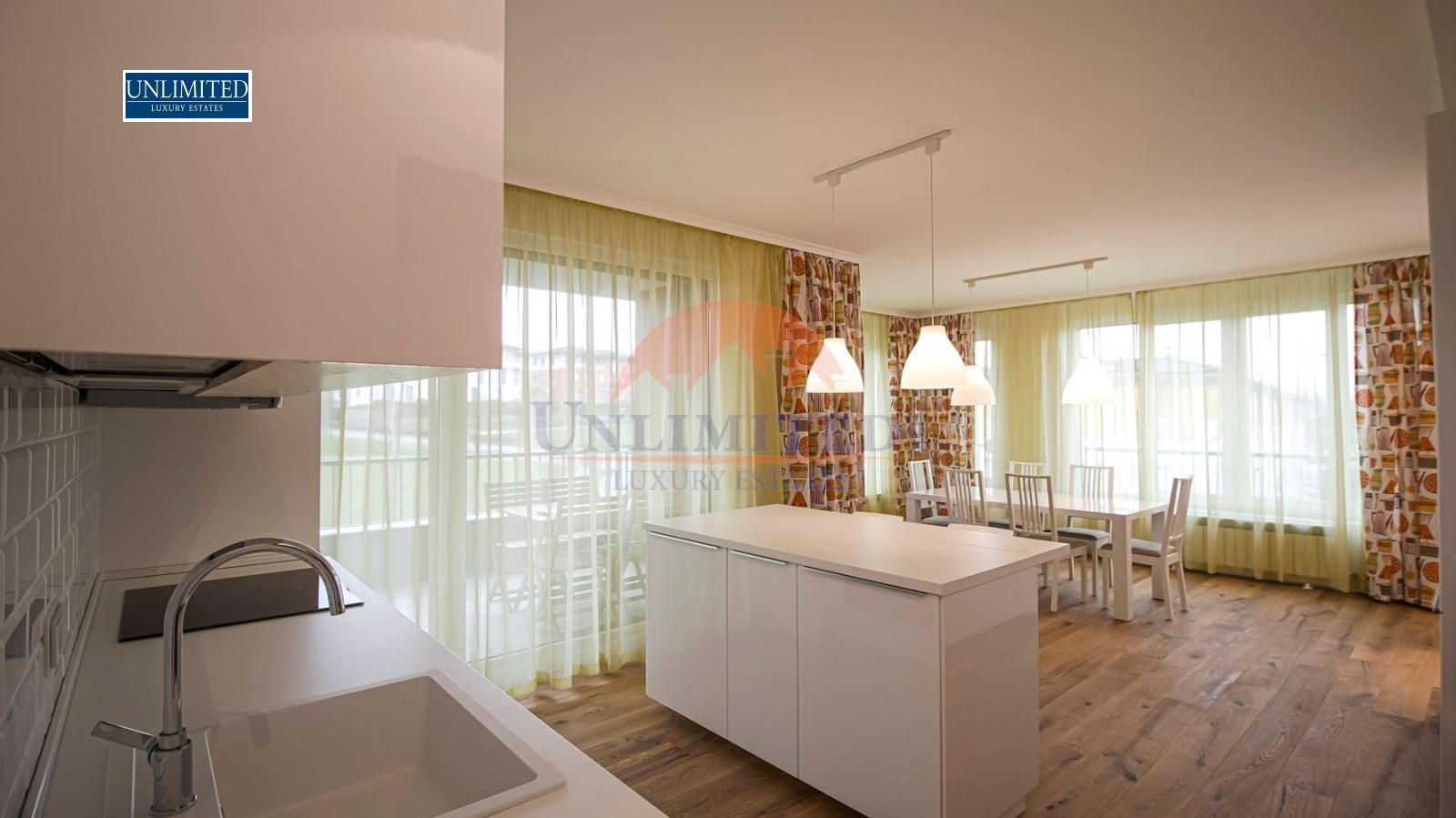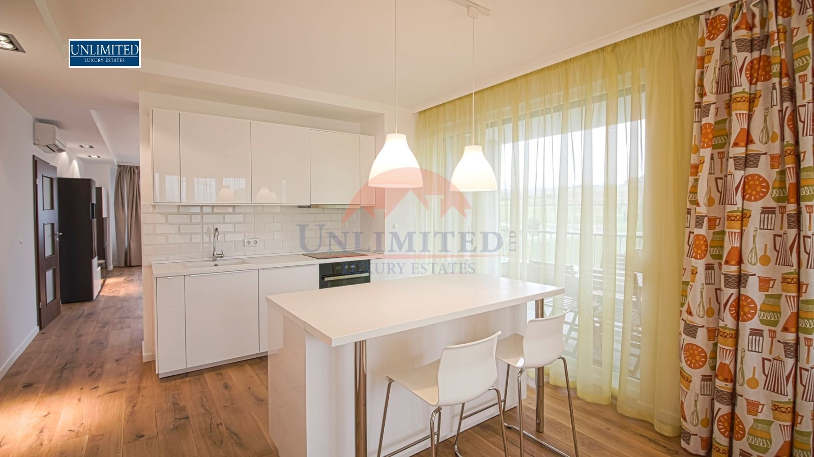 Апартаментът е нов, с просторни помещения, оптимално разпределение и много естествена светлина. Интериорът е изпълнен в светли тонове, с висок клас подови настилки, модерно осветление и комфортни мебели.