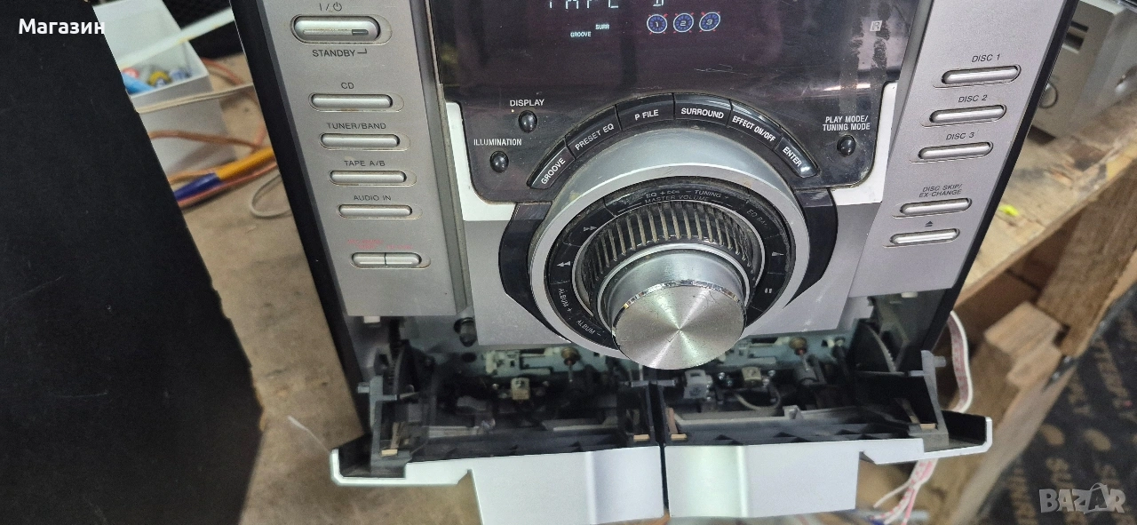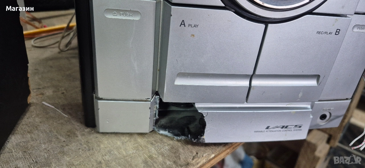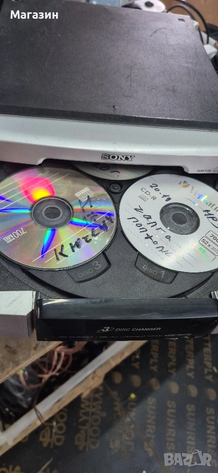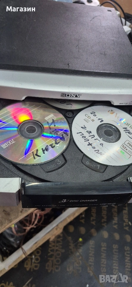 Продавам уредба Sony, с две касетки и три диска. Всичко си тръгва, но има външни забележки /снимани са/. Може да се ползва за части.