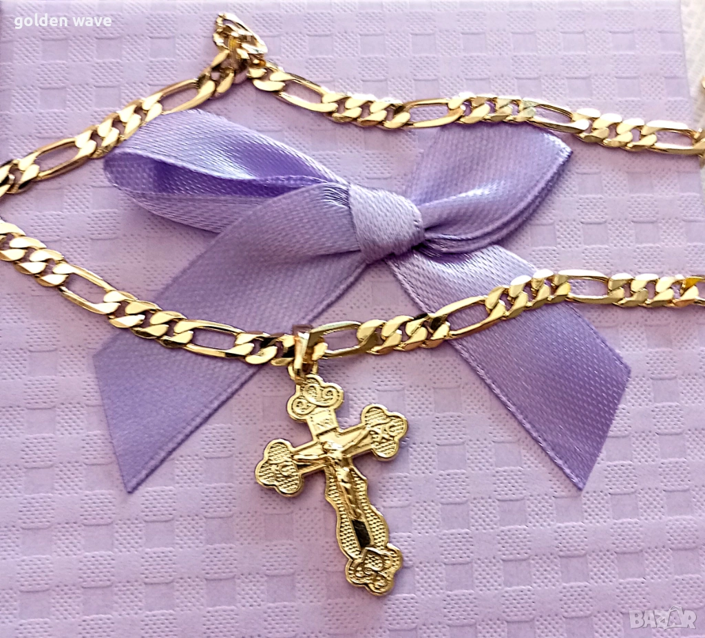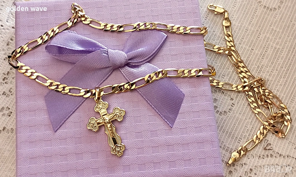 много красиво и финно позлатено дамско бижу - синджир тип Картие с кръстче . Дълготрайно златно покритие , антиалергично . Дължина на синджира 55 см