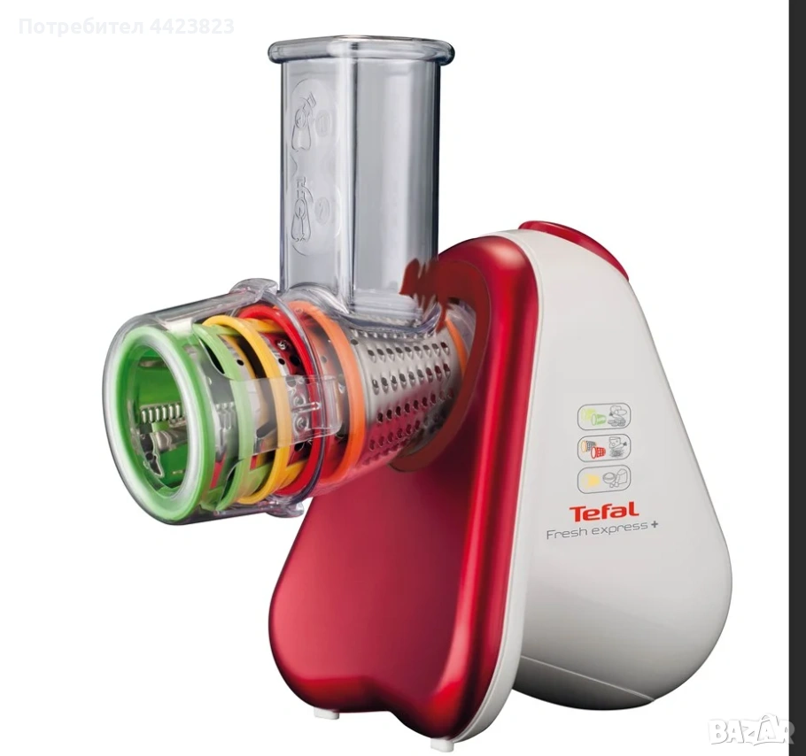 Електрическо ренде от неръждаема стомана Tefal Fresh Express + Ви позволява да режете и настъргвате на едро и дребно зеленчуци, плодове, сирене или шоколад.Прави рязането с лекота и прецизност благодарение на петте си приставки.