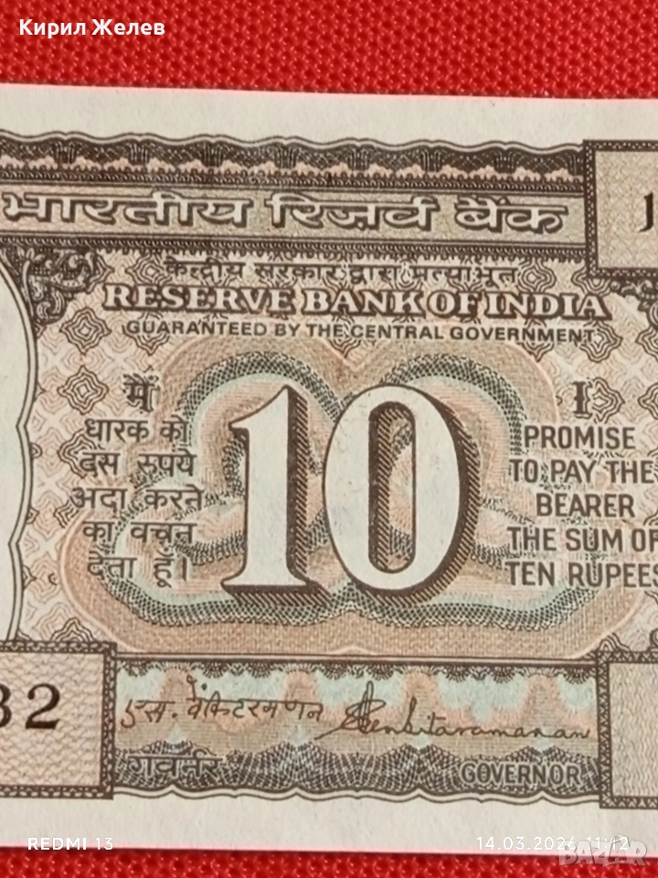Банкнота ИНДИЯ много красива перфектно състояние непрегъвана за КОЛЕКЦИЯ ДЕКОРАЦИЯ 53859 → Обява 53834873