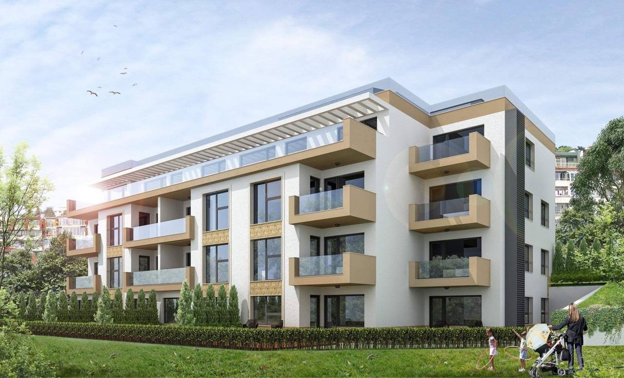Апартамент с площ 64,9 м² (57 м² чиста), разположен на 2-ри етаж в съвременна жилищна сграда в един от най-тихите и зелени райони на Варна Долна Трака.
