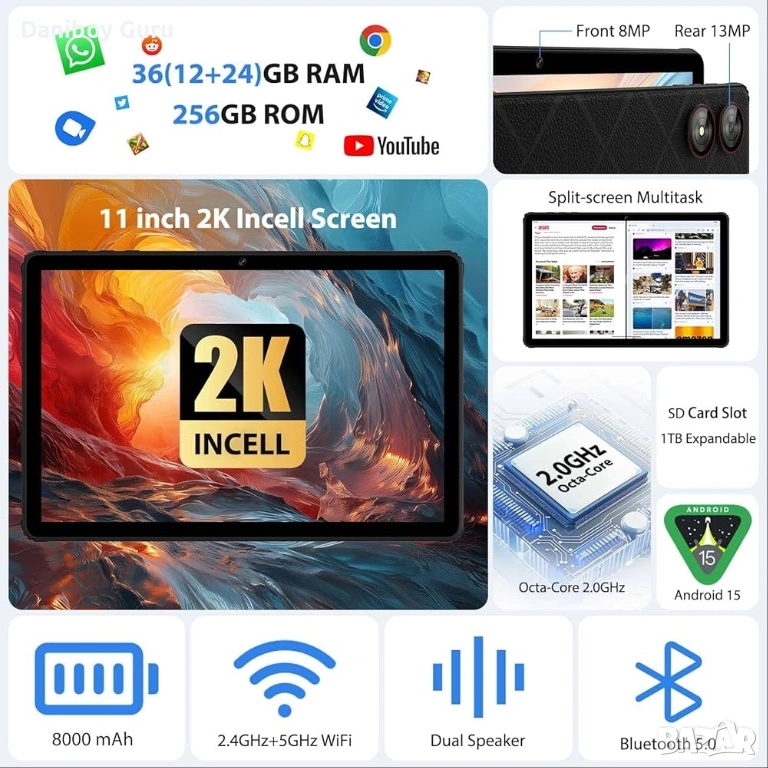 - 36GB RAM + 256GB ROM поддържа до 2TB micro SD карта памет - не е включена в комплекта