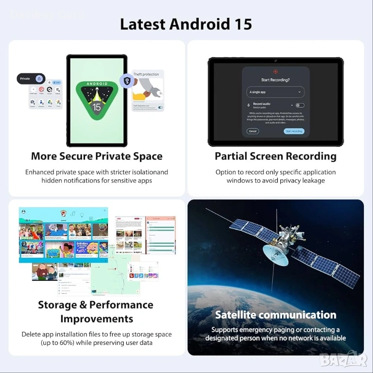 Таблет с Android 15 и осемядрен процесор Таблетът PIXGOOD-M518, който се продава, се захранва от най-новата версия на Android 15, което го прави по-интелигентен и по-бърз, като същевременно прави значителни подобрения в защитата на поверителността за максимална сигурност на данните. Благодарение на осемядрения процесор T606, мощният 11-инчов таблет позволява непрекъсната многозадачност и игри, което го прави идеален за работа, свободно време и у дома.
