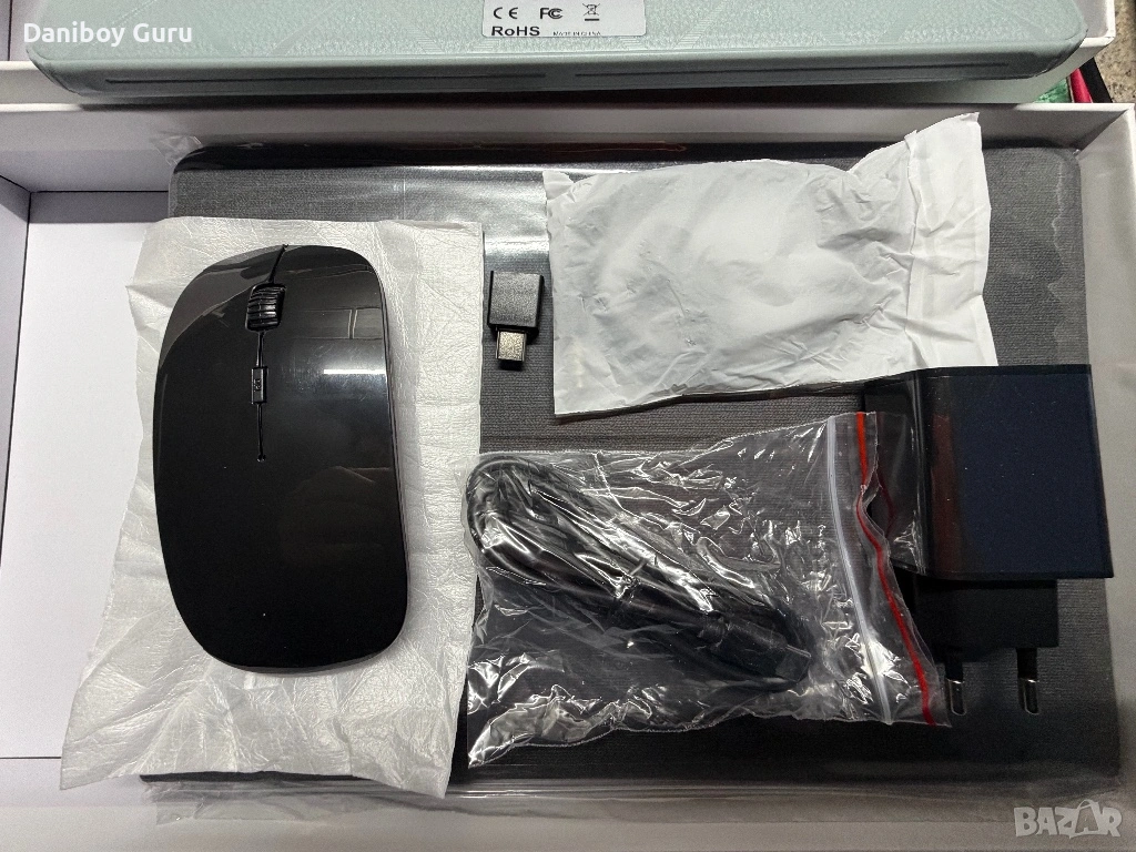 Комплект с кутия и подаръци- клавиатура, калъф, мишка, зарядно, слушалки и кабел! Моля обърнете внимание, че предлаганият от мен таблет е с 11 инча дисплей- другите обяви са с 10 инча дисплей. Не се подлъгвайте да вземете с по-ниска цена, не печелите нищо!