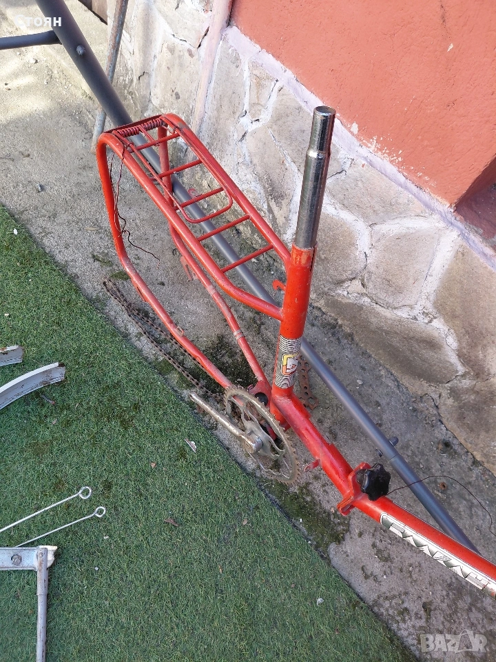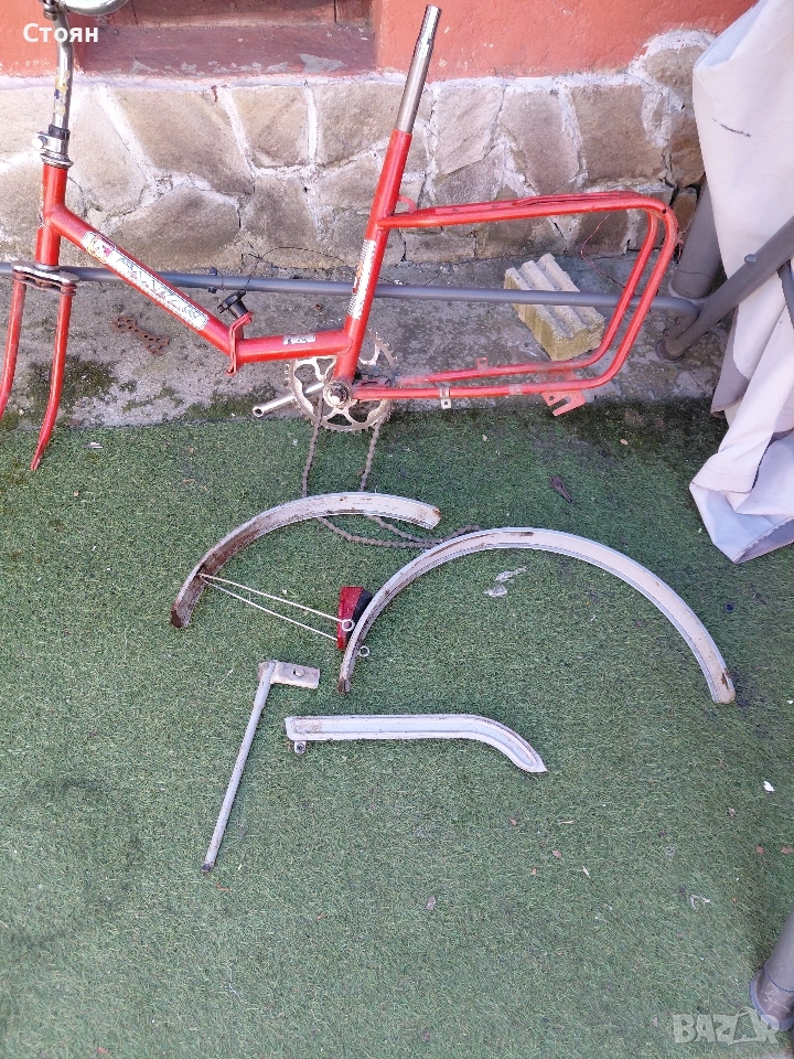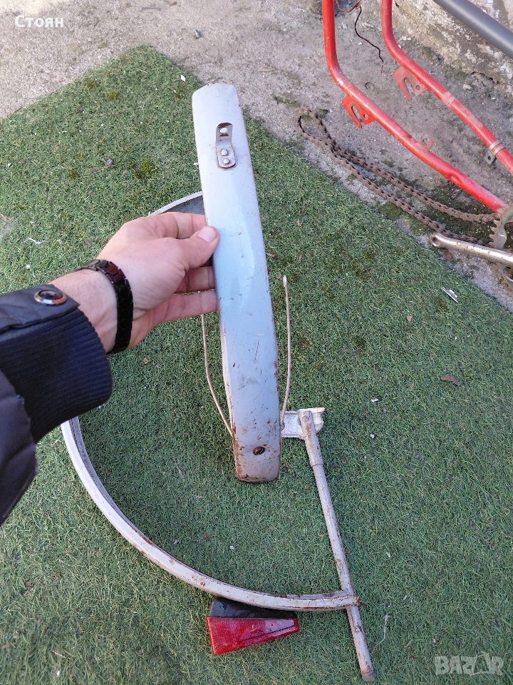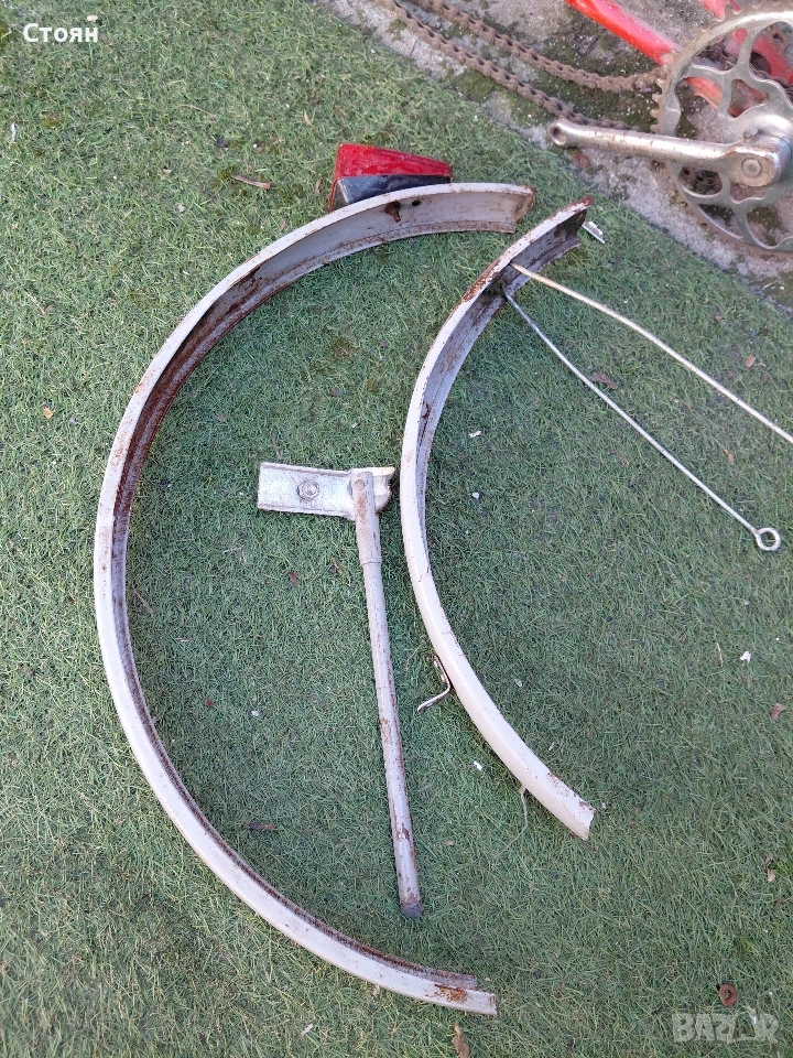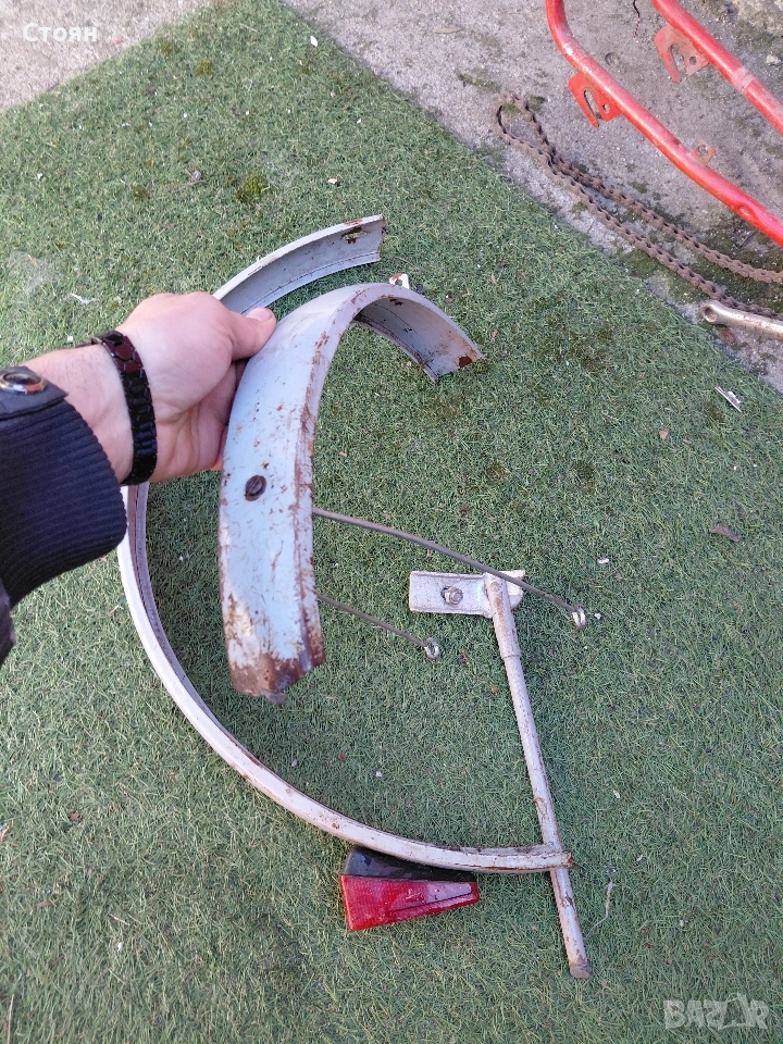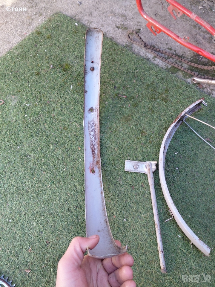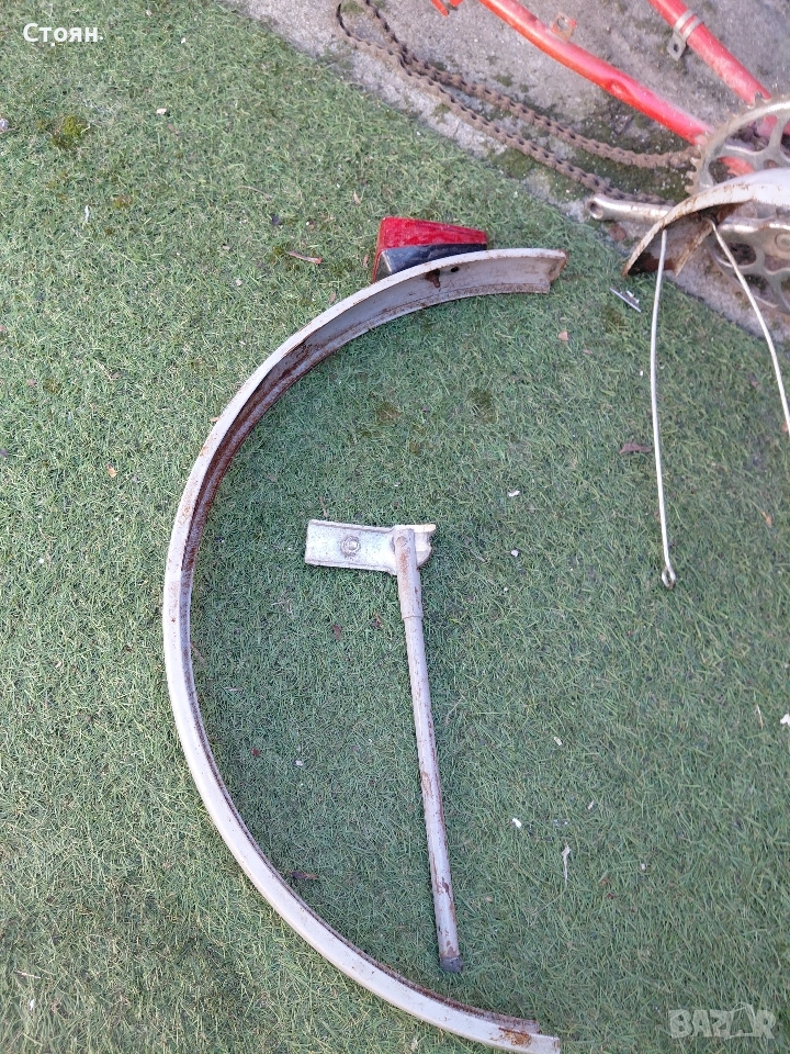 предпазител за верига цена 6 евро, стойка за колело 6 евро, заден калник със стопче 10 евро, преден калник 9 евро. Рамка 16 евро. за 20 цола балканче са частите