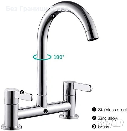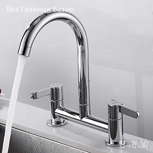 Кухненски смесител с двоен отвор и елегантен мостов дизайн