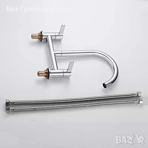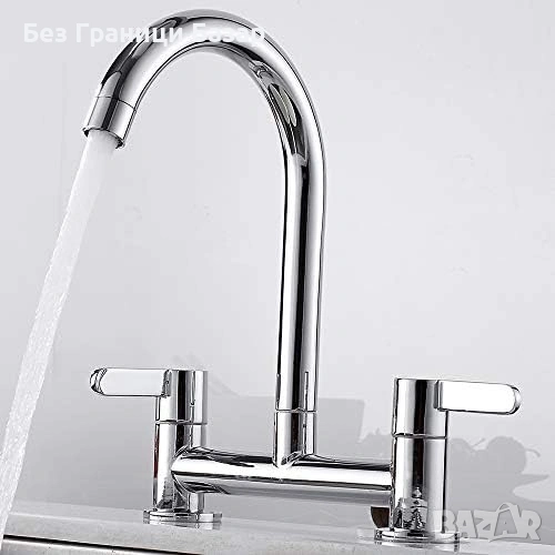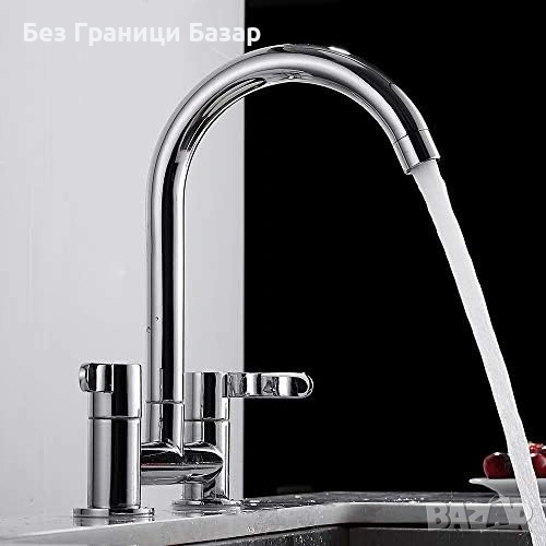 Нов кран Смесител за мивка 2 дупки 360° въртящ чучур топла студена вода