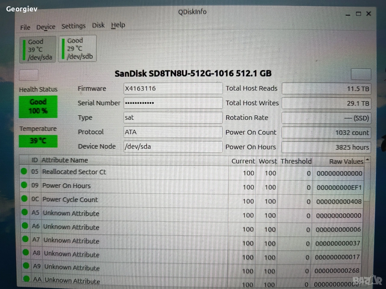 Продавам SSD SATA M.2 2280 SanDisk 512GB в отлично състояние. Свалено от малко използван лаптоп поради ъпгрейд към 2TB.
