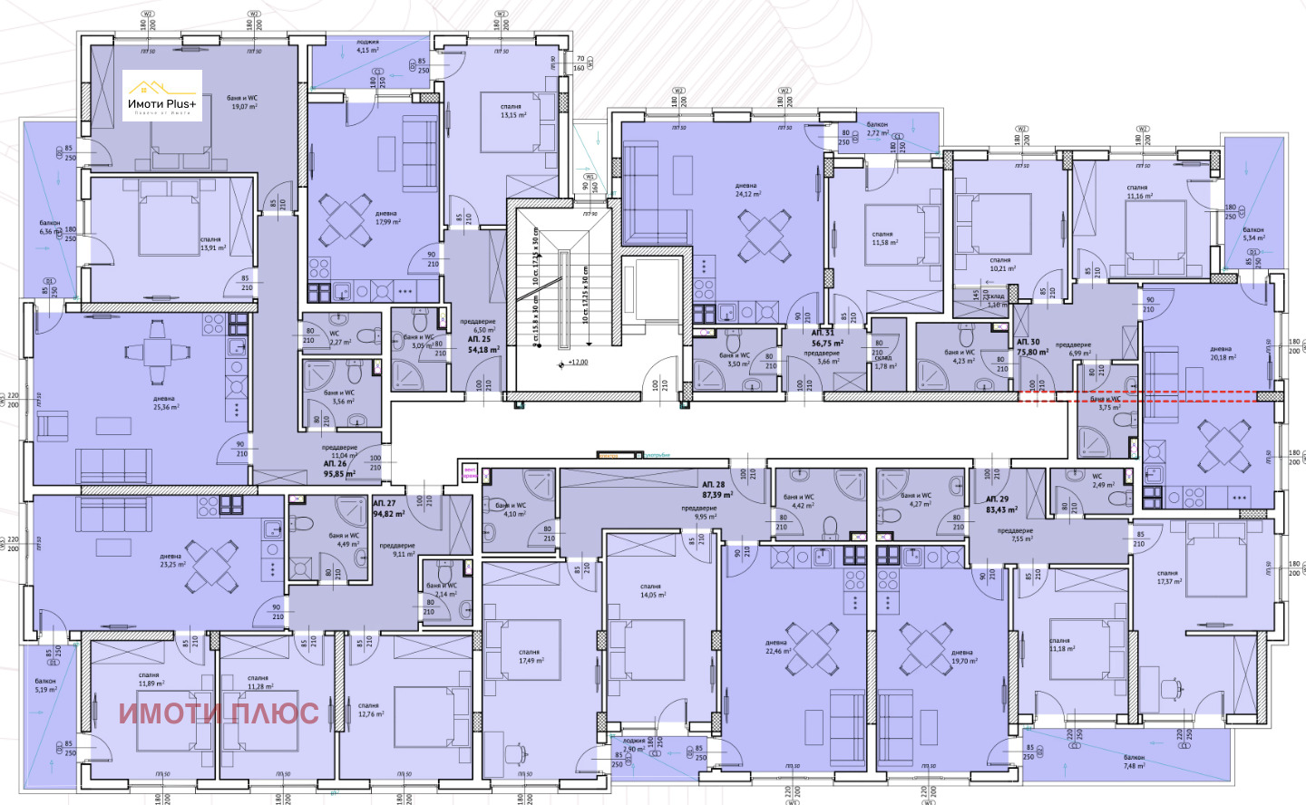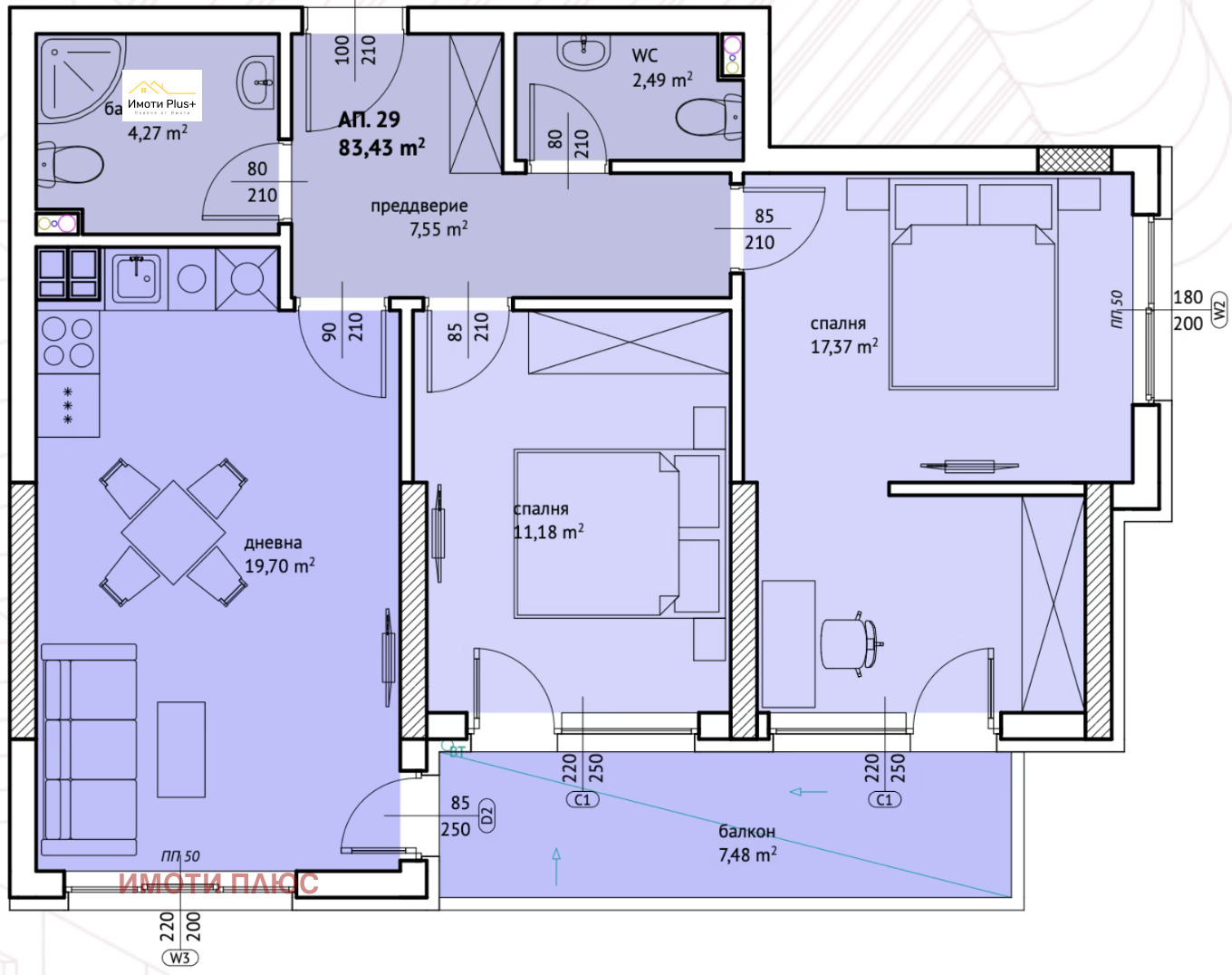 Към апартамента е включен Склад (находящ се в сутерена на сградата) с площ от 2,14 кв.м.