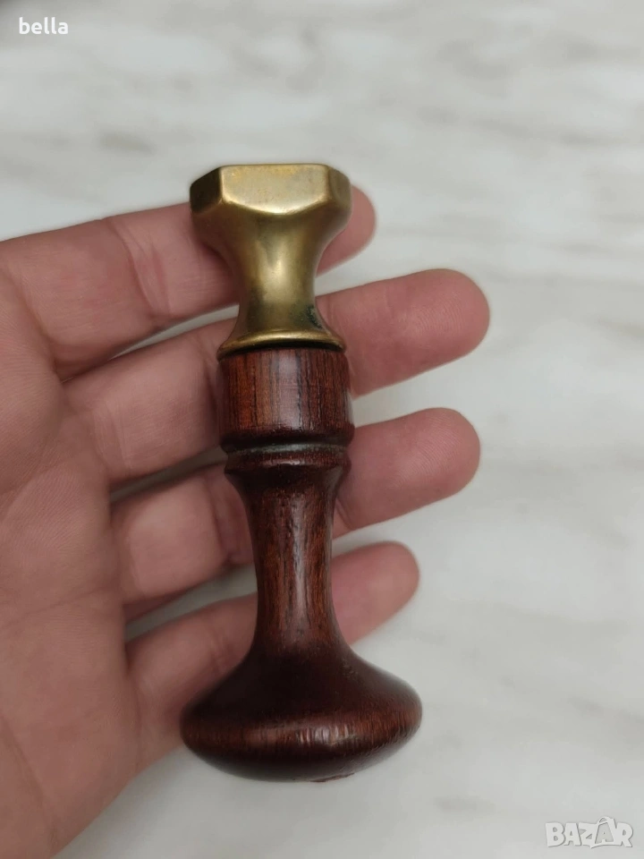 Стар восъчен печат за восък Основа от масивен бронз/месинг и ергономична дръжка от тъмно лакирано дърво.Цена 45 евро