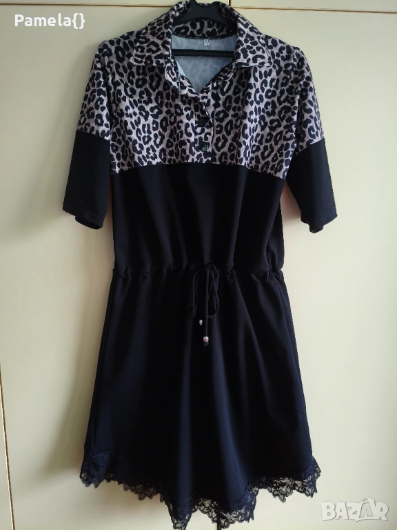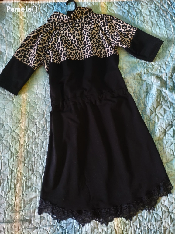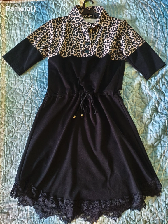 Нова рокля с тигров принт и нежна дантела, размер С/М.