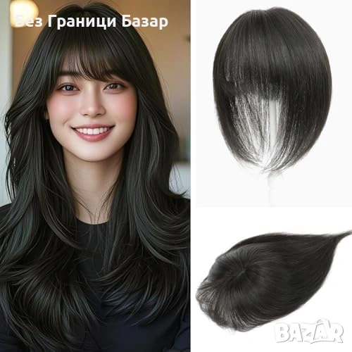 Топер за коса от 100% естествена човешка коса с бретон в Natural Black