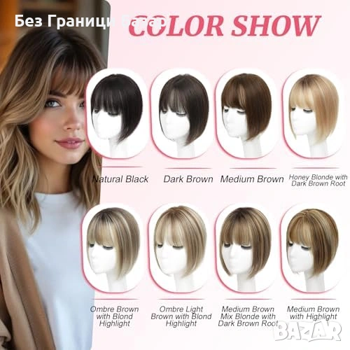 Нов Дамски топер с бретон клипсове 100% естествена човешка коса жени