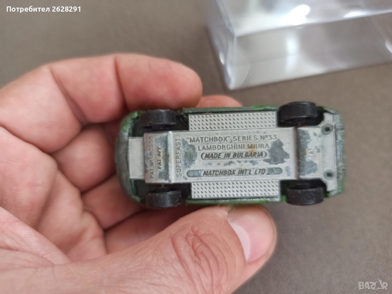 Продавам автентичен екземпляр от " мистичния " Български модел на Мачбокс - Ламборжини Миура.Количката има следи от употреба,и пукнато леко стъкло.Нитовете са здрави, вратите не са хлабави и окачването пружинира.