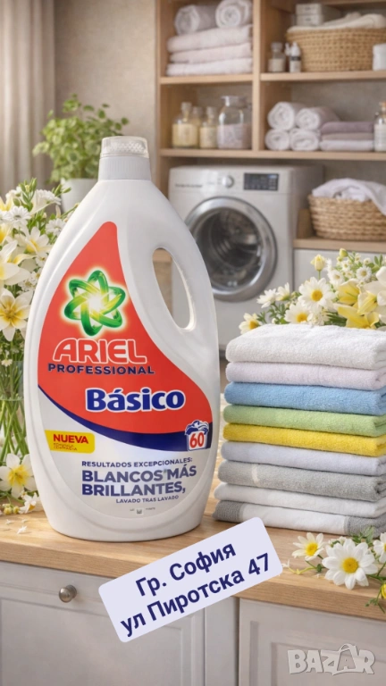 Ariel Professional Básico е високоефективен течен перилен препарат, създаден за дълбоко почистване на тъканите и премахване на упорити петна. Благодарение на мощната си формула препаратът осигурява отлично изпиране и запазва белотата на дрехите дори след многократно пране.