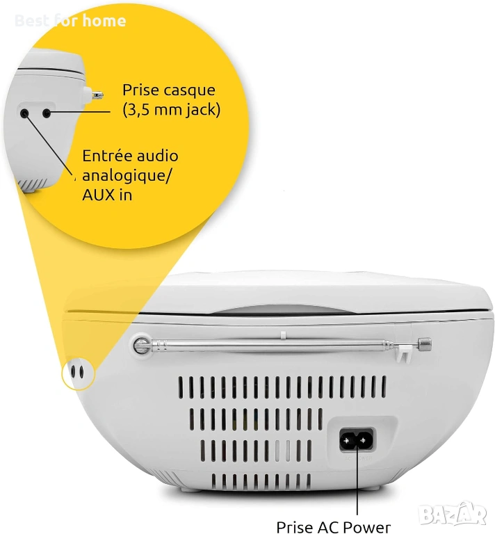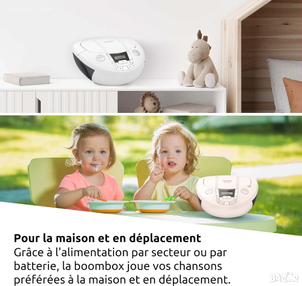Малкото устройство е леко и лесно за употреба благодарение на ясно разположените си бутони. Вграденият CD плейър възпроизвежда всички често срещани CD формати, включително MP3 CD-та. FM радиото улавя радиостанции, налични в FM диапазона.