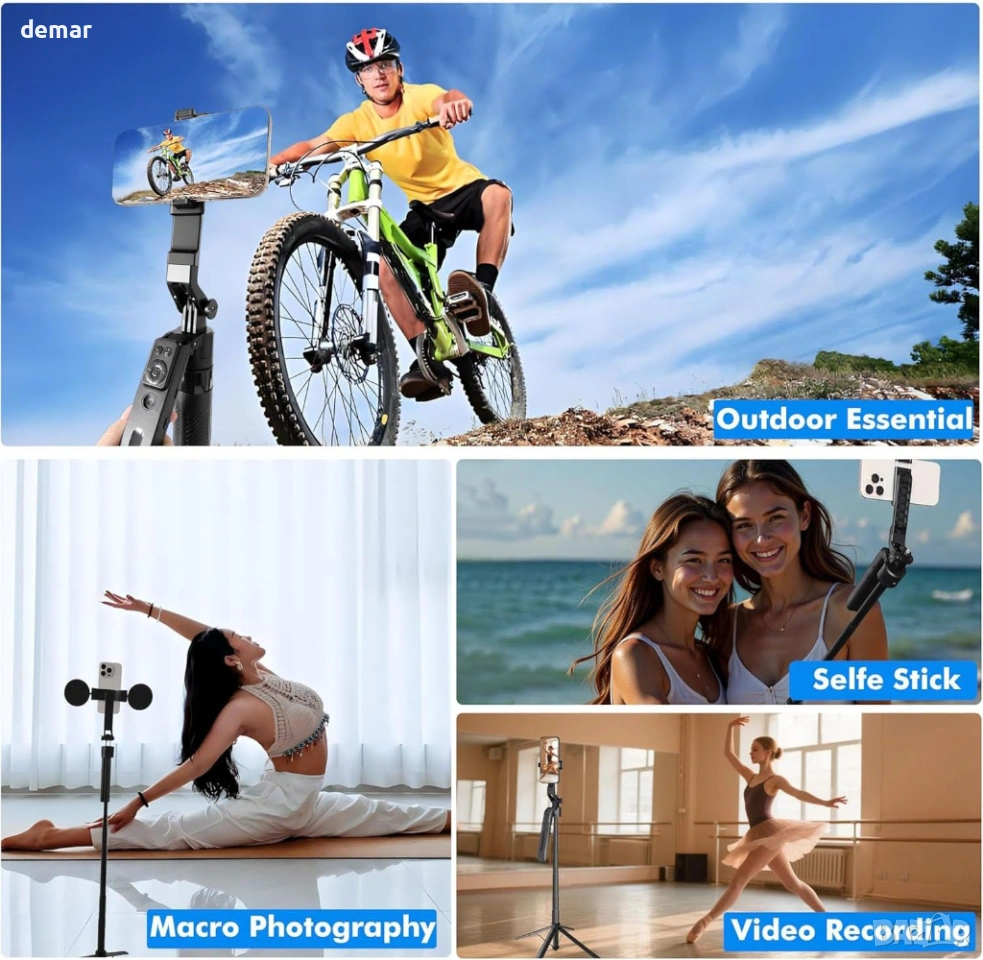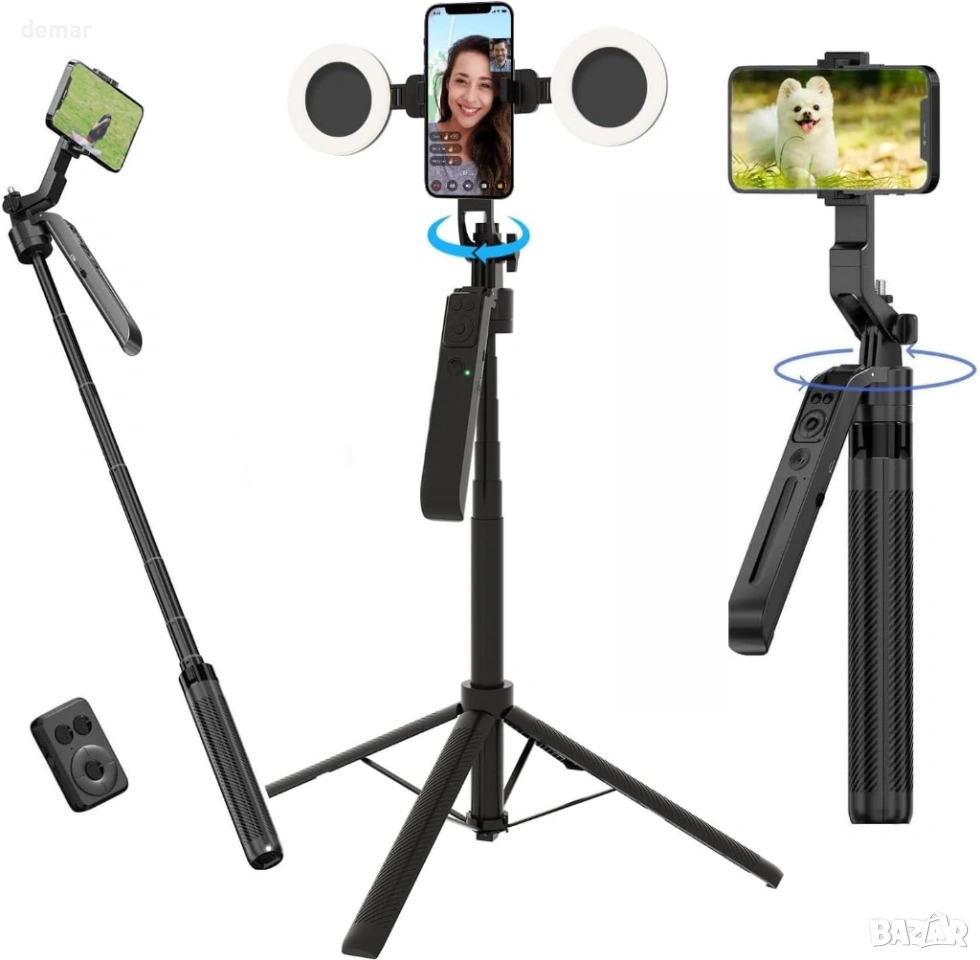 Статив за селфита с автоматично проследяване на лица за iPhone и Android, 1,8 м, дистанционно