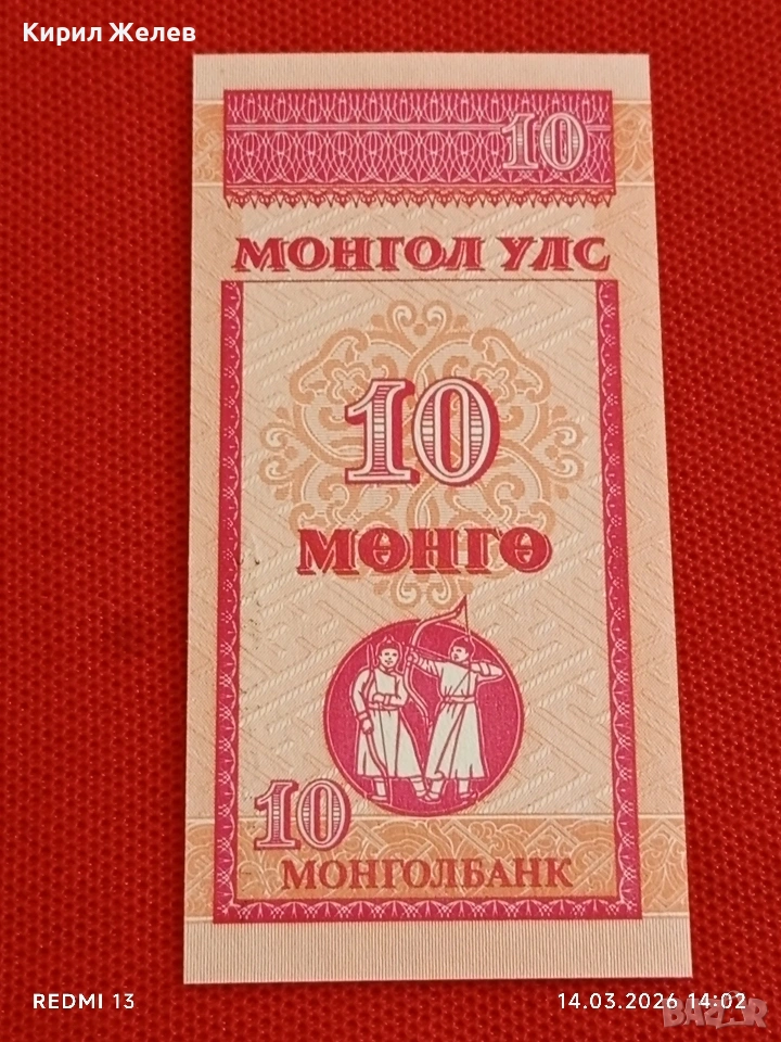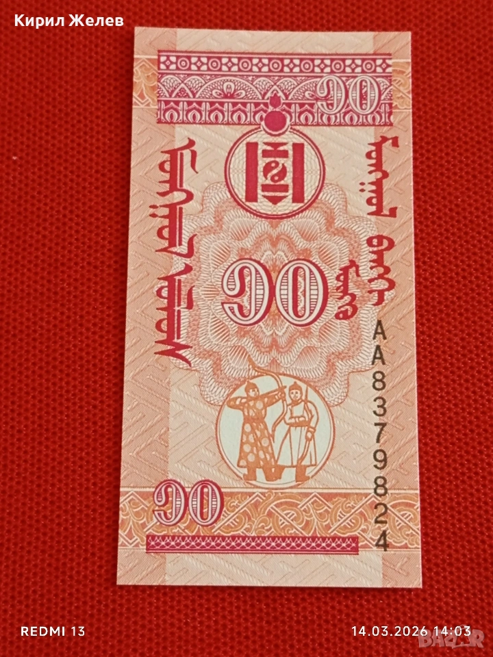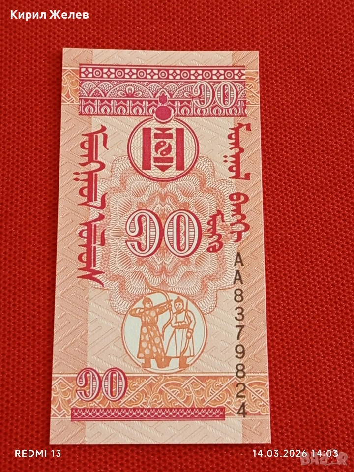 Банкнота МОНГОЛИЯ много красива перфектно състояние непрегъвана за КОЛЕКЦИЯ ДЕКОРАЦИЯ 53837 → Обява 53836527