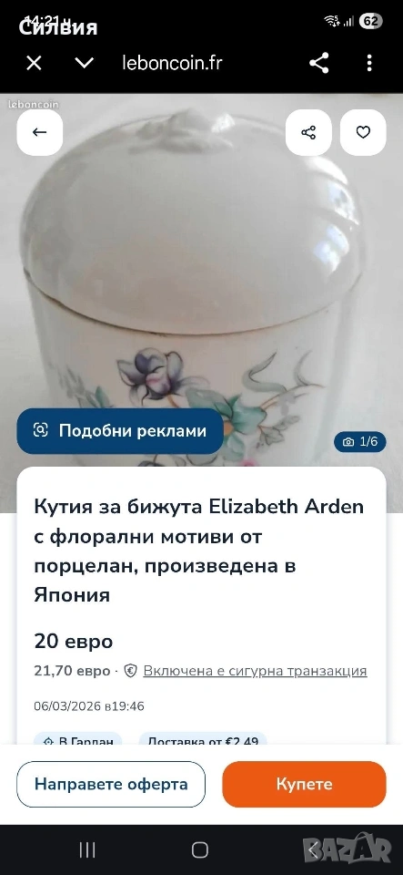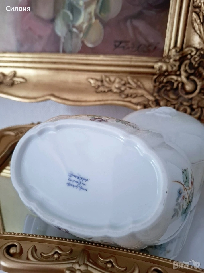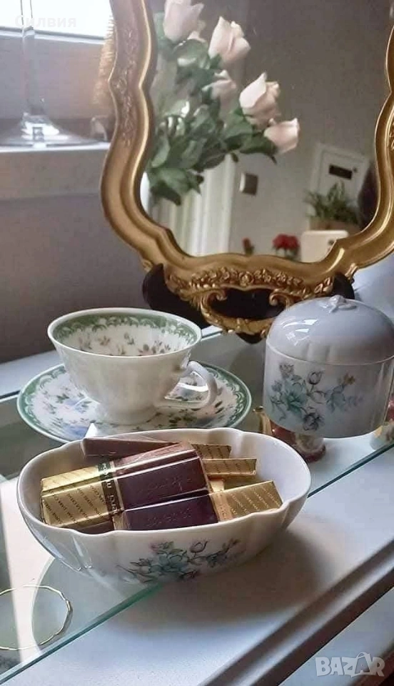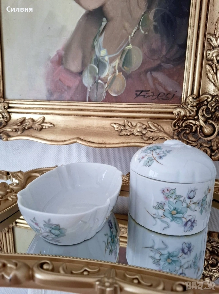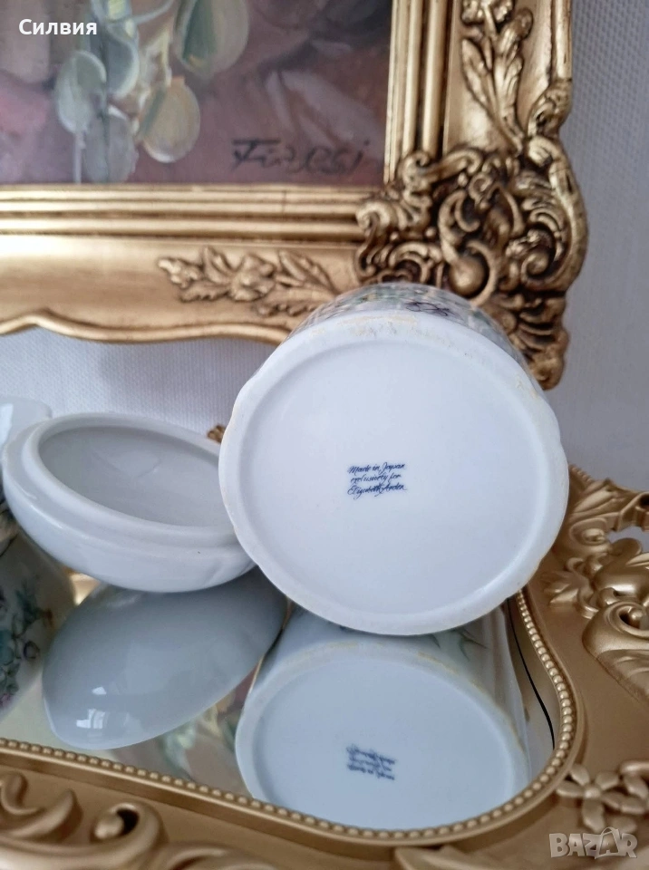 Японски порцелан🌸 Винтидж порцеланова кутия, подходяща за бижутерка. Изработена в Япония за Elizabeth Arden. В комплект с овална купичка, също подходяща за бижута и дрънкулки. Обща цена 2️⃣5️⃣€ 48,90лв 🌸Оригинално са: кутия (със соли) за вана и сапунерка. ღꕥ⊱❥─❥⊱💜✿⊱╮☆♪ ░L░o░V░e░❥─❥⊱💜✿⊱╮💜☆♪ღ💜ღ꧂ღ