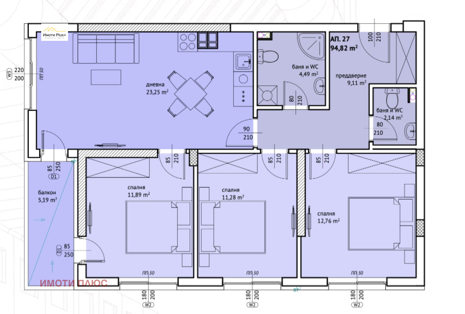 Имотът е с обща площ 109,77 кв.м. (застроена площ 94,82 кв.м.) и включва: