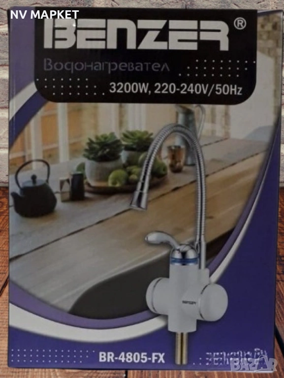 Смесител с проточен бойлер 3200W. 3а плот + Гъвкав чучур,24м гаранция