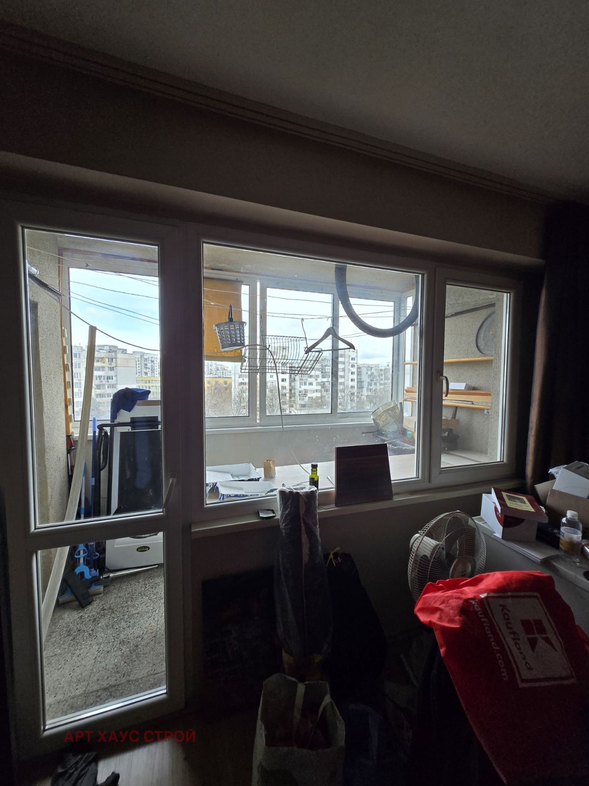 Тераса към спалнята остъклена с PVC дограма с плъзгаща система, настилка мозайка