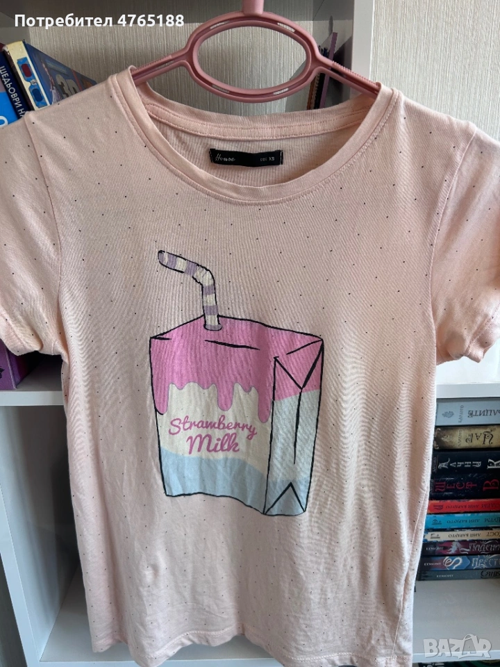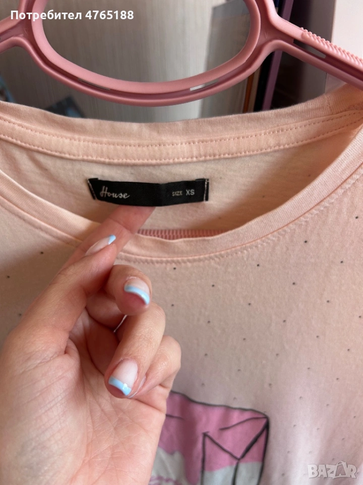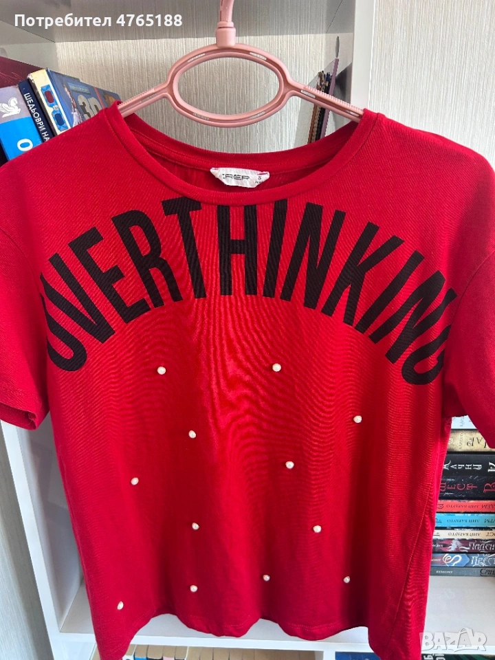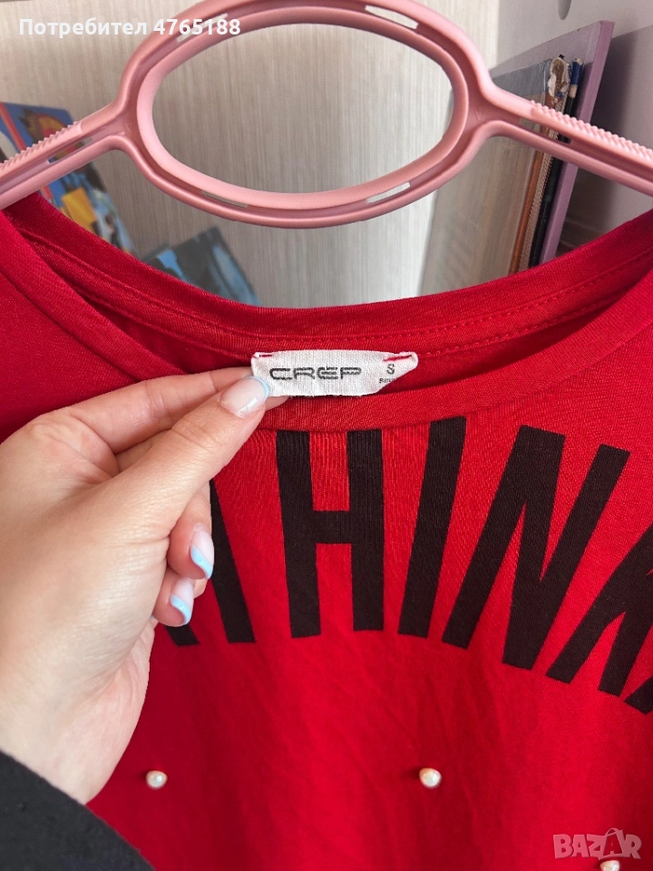 Розовата тениска е на марка House(xs), а червената е CREP(s)