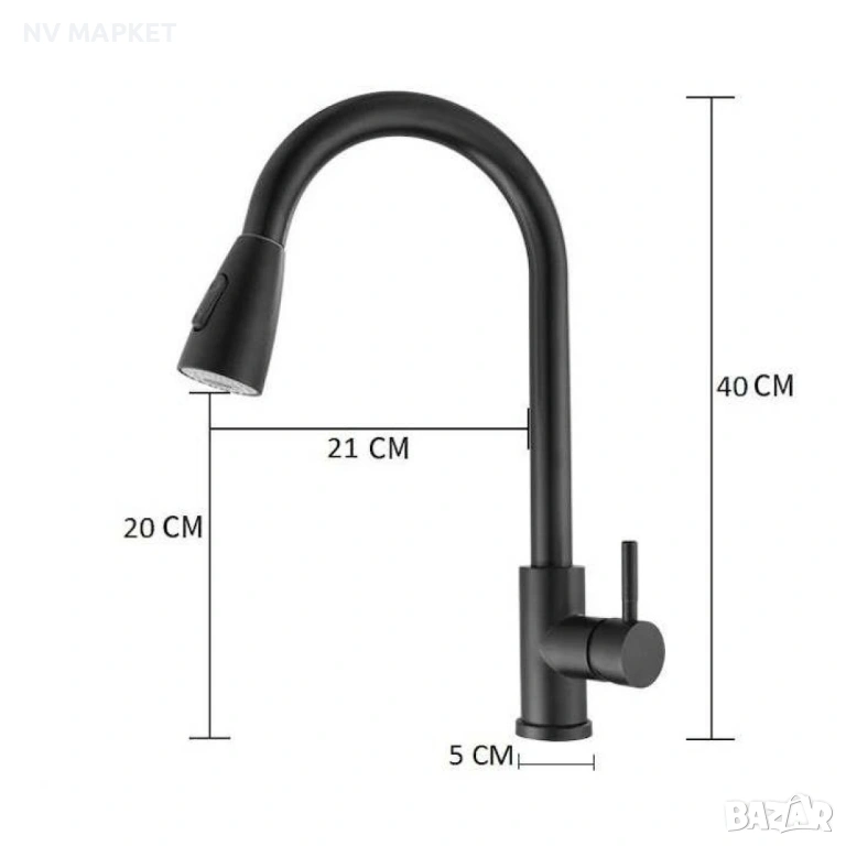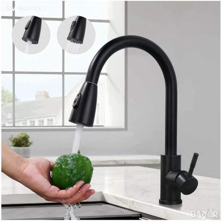 Кухненският смесител с издърпващ се душ в матово черно е идеалното допълнение за всяка модерна кухня. Със своя елегантен дизайн и висококачествени материали, този смесител предлага не само стил, но и изключителна функционалност. Издърпващият се чучур и въртящият се на 360° чучур предоставят максимална гъвкавост, докато бутонът за смяна на струята и единичният контрол на температурата и налягането на водата осигуряват лесно управление и комфорт. Изработен от хранителна стомана с никелово покритие, този смесител е устойчив на корозия и лесен за почистване, което го прави перфектен избор за всеки, който търси дълготраен и стилен кухненски аксесоар.