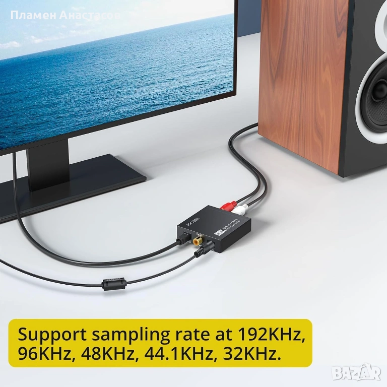 Конверторът поддържа висококачествено аудио до 192kHz / 24-bit, което осигурява чист и детайлен звук без изкривяване. Устройството може да работи с различни честоти на дискретизация – 32, 44.1, 48, 96 и 192 kHz.