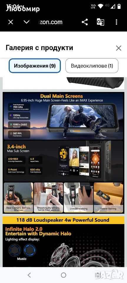 Ulefone Armor 30 Pro 5G Двоен екран, здрав телефон, 32GB + 512GB, 6.95" FHD 120Hz + 3.4" екран, 12800mAh 66W, 50MP + 50MP + 64MP + 32MP, Infinite Halo, 118dB високоговорител, здрав Android 14 смартфон, WiFi 6E/NFC.Двоен екран 6,95" + 3,4"】: Основният екран е с диагонал 6,95", честота на опресняване 120Hz, Corning Gorilla Glass 5, ултраясна FHD+ резолюция 2460x1080 и 700 нита. 3,4-инчовият вторичен екран, представян някога в unibody смартфон, с ултрависока резолюция 412×960 и пикова яркост 600 нита. Големият заден екран отразява изцяло съдържанието и операциите от основния екран, издигайки взаимодействието ви с устройството на нови висоти. Превключвайте без усилие между предния и задния екран за безпроблемна работа. (Забележка: Не е съвместимо с AT&T или Cricket!)