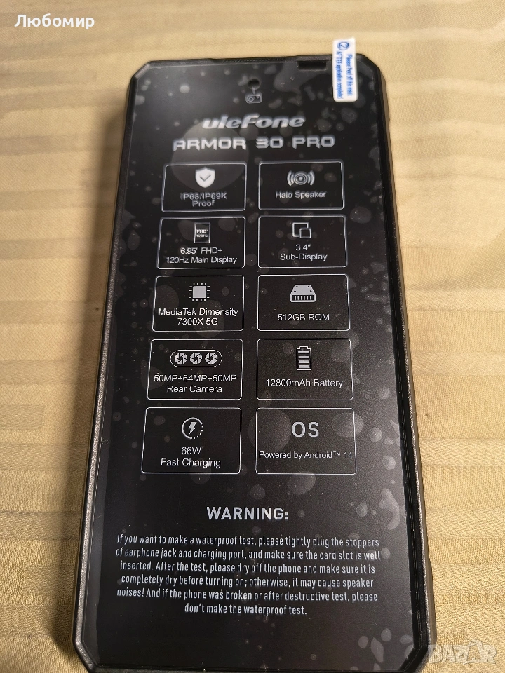 【Сертифициран по IP68/IP69K и MIL-STD-810H】: Сертифициран по стандарта за защита IP68/IP69K и MIL-STD-810H, здравият телефон Ulefone Armor 30 Pro не се страхува от вода, прах и случайни падания. Перфектен за строителни работници, миньори или авантюристи, този телефон е вашият най-добър инструмент за оцеляване.