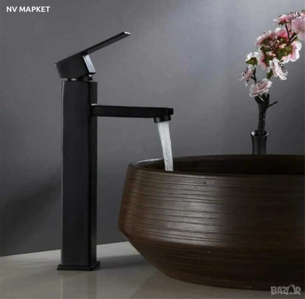 Стилен смесител за мивка за баня, неръждаема стомана, черен