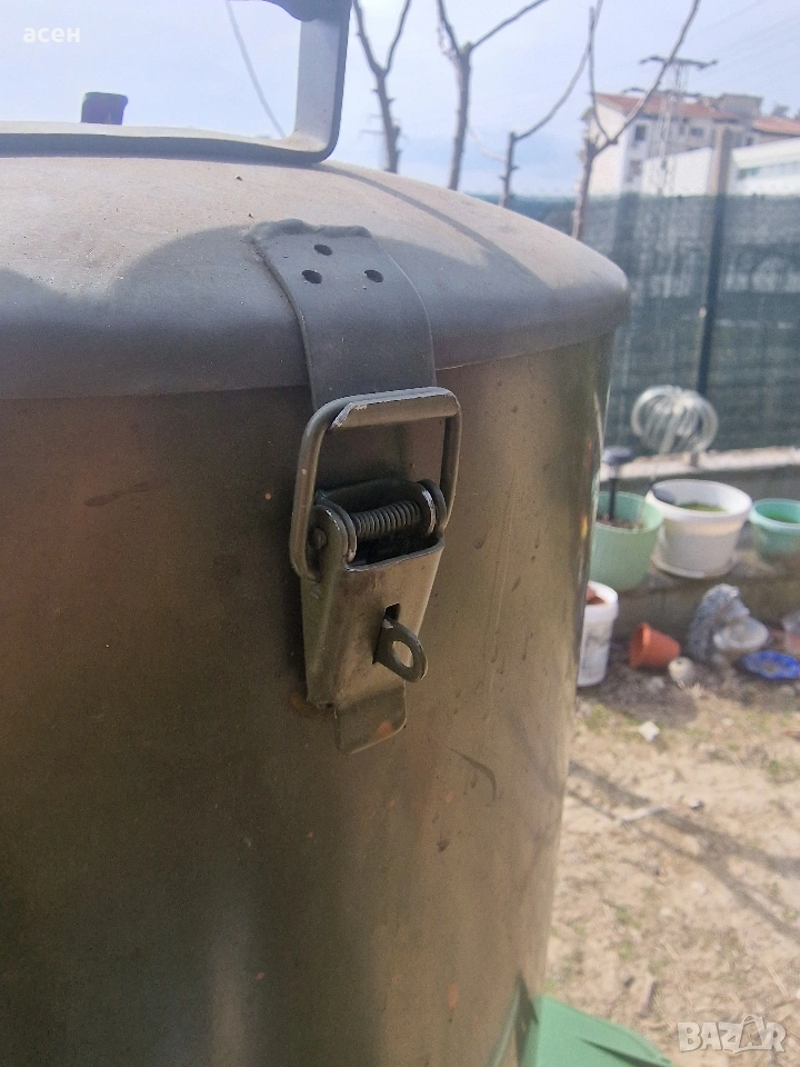 Казан около 70 литра, с дебелостенна неръждаема стомана, алпака – вечен съд, устойчив на корозия, с оригинални кранове и пароразпределител (обръч) на дъното за равномерно нагряване. Идеален за консервиране: Перфектен за стерилизация на месо (русенско варено), риба и зеленчуци при температури над 100°C. Може лесно да бъде превърнат в дестилатор за етерични масла или висококачествена ракия. Поради високия клас стомана е идеален за ферментация или варене на мляко. цената е в евро!