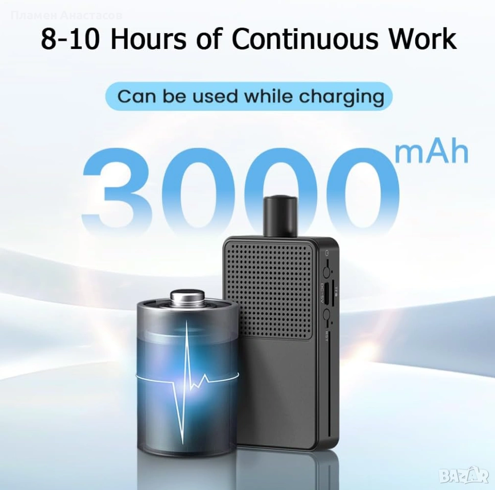 Камерата е оборудвана с 3000mAh батерия, която осигурява приблизително 8–10 часа непрекъснат запис. Освен на батерия, устройството може да работи и с постоянно захранване, което позволява по-дългосрочно наблюдение.