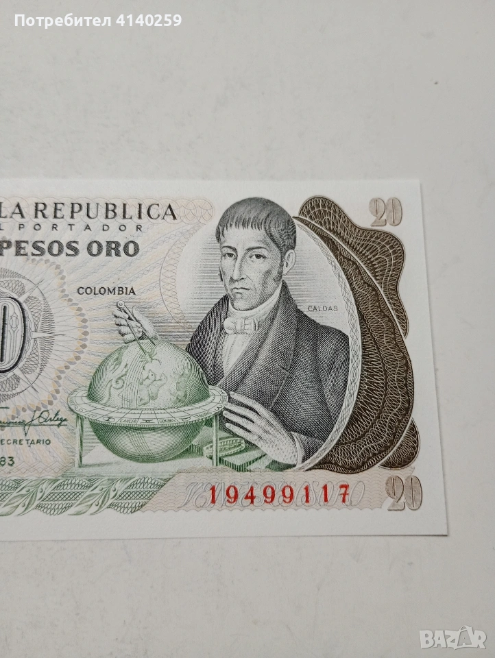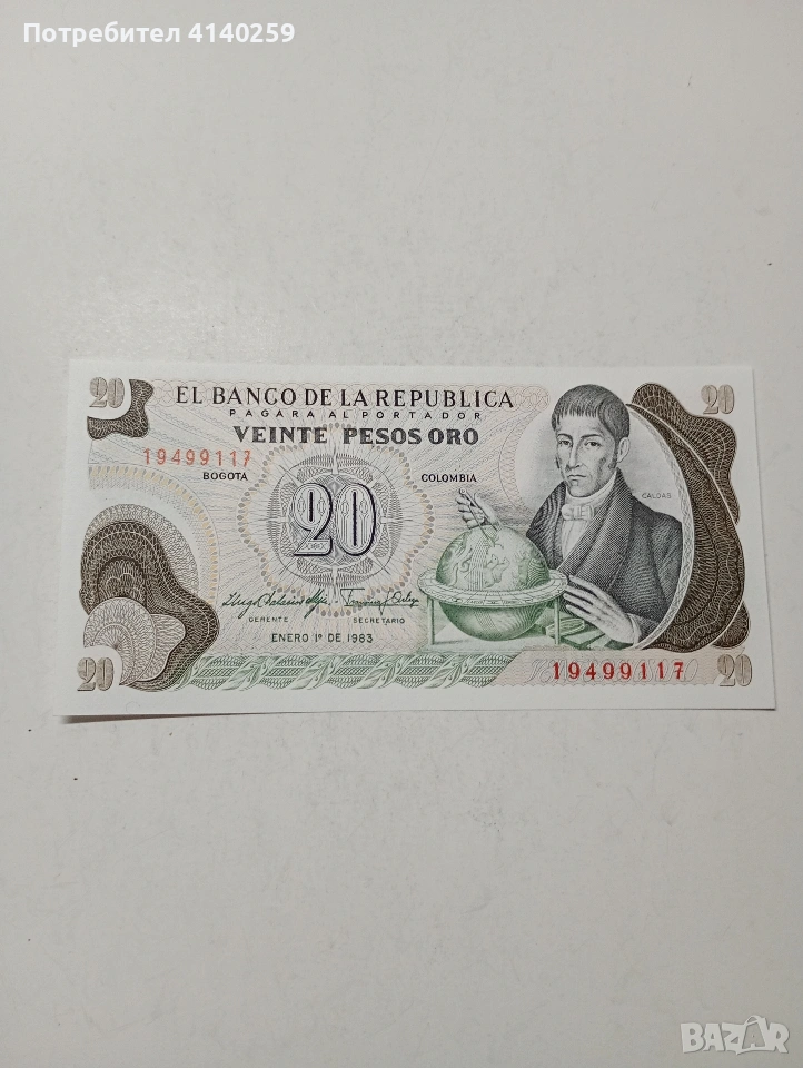 КОЛУМБИЯ БАНКНОТА 20 ПЕСОС 1983 Г СЪСТОЯНИЕ НОВО ПОЛУЧАВАТЕ СНИМАНАТА БАНКНОТА РАЗГЛЕДАЙТЕ ДРУГИТЕ МИ ОБЯВИ ДА КОМБИНИРАТЕ ДОСТАВКА ЕКОНТ ЗА ВАРНА ЛИЧНО