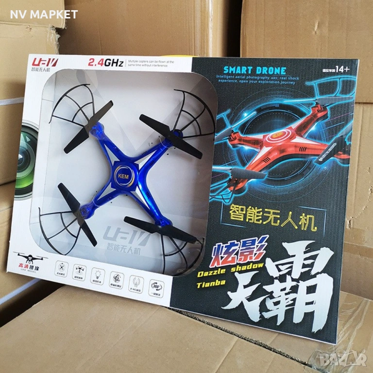 Функцията за One Key Return дава възможност на дрона да се върне към вас, след като го извикате. Той предлага висш пилотаж със стабилно въртене на 360 градуса в различни посоки, благодарение на 6-осния жироскоп. Превключвателят на скоростта ви позволява лесно да превключвате между висока и ниска скорост спрямо това къде лети дронът. Дронът работи с висококачествени батерии. В комплекта е включен USB кабел, с помощта на който те се зареждат. С едно зареждане батериите могат да ви осигурят 6-8 минути полет, така че ако имате желание да използвате дрона за по-дълго време, то е нужно да си закупите резервни батерии. Използването на дрон позволява на всеки да има нова перспектива за света. Те са перфектен начин за забавление на всеки. Летенето с дрон е прост забавление. Неговата употреба предизвиква детските спомени от управлението на количка с дистанционно управление. С вашия дрон бихте могли да стигнете до места, които иначе не биха били възможни, като например планински връх или пък средата на изкуствен водоем. Благодарение на напредъка на технологиите, дронът включва вградени системи за насочване, които улесняват полета, избягват някои препятствия, както и кацат обратно там, откъдето са излетели. Дронът може да се похвали с широкия обхват на приложение. Докато повечето модели могат да бъдат управлявани от едва 30 метра, то нашето предложение успешно може да се контролира на разстояние до 50 метра. Имайте предвид, че този обхват на приложение се определя от честотата на радиовълните в района, където използвате дрона. Ако го пускате да лети в гора например или на друго място, където има подобни пречки, то е вероятно той да трябва да се управлява от по-малка дистанция.