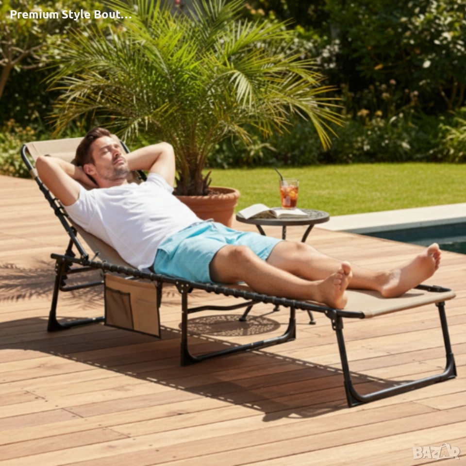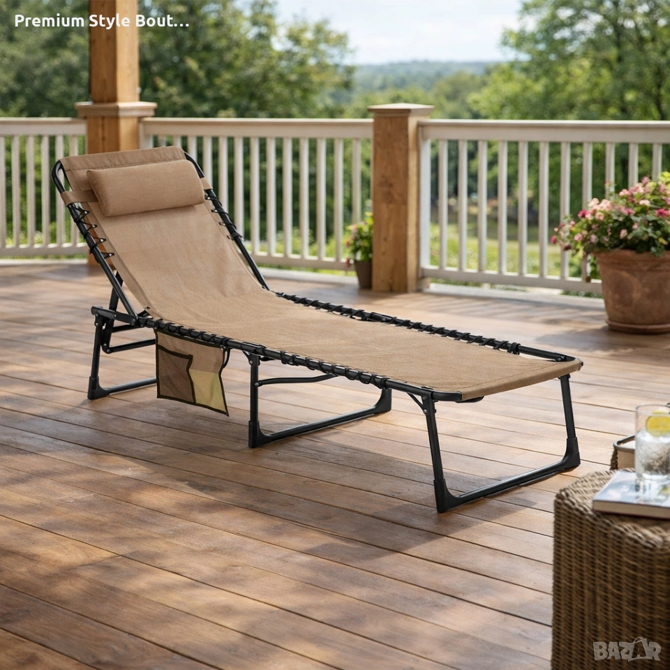 Сгъваем градински шезлонг - легло с джоб - пълен релакс и комфорт