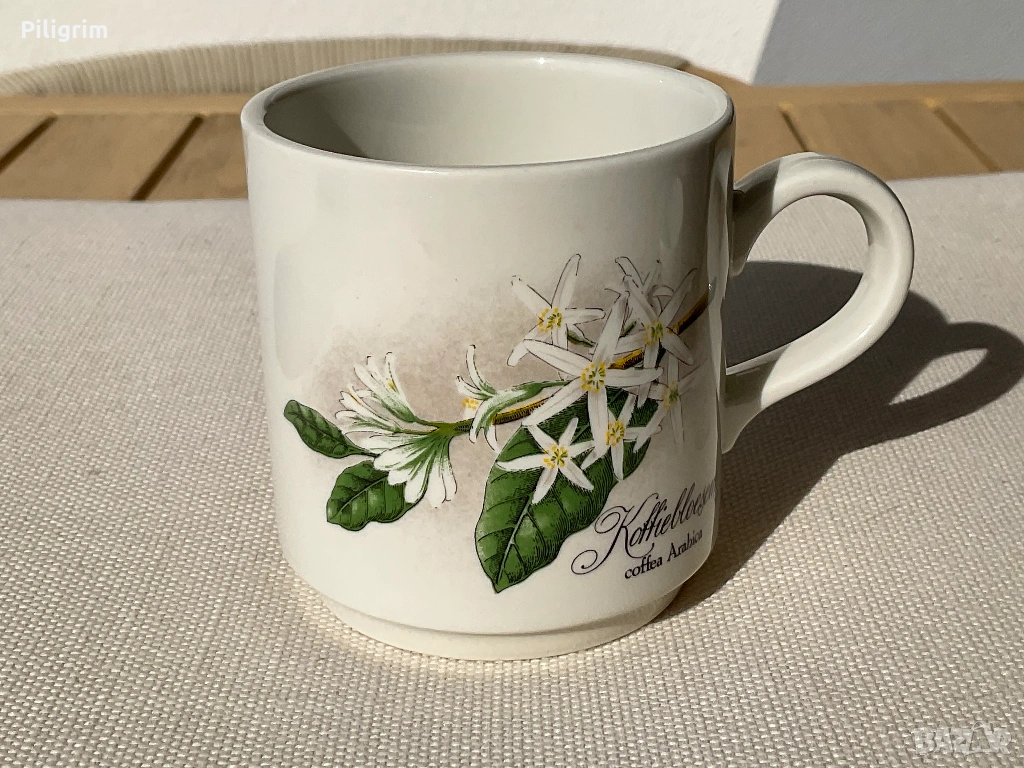 Комплект от три порцеланови чаши с ботанически мотиви. Характеристики: Колекцията Botanica е известна с реалистичните си ботанически илюстрации на различни билки и цветя. Всяка бройка от серията е уникална и е етикетирана с латинското наименование на растението. - Дизайн на кафеен цвят. - Дизайн на кафеена клонка. - Дизайн на кафеен цвят. - Всяка чаша е с подробна илюстрация на кафеени растения. Цвят: Многоцветен и бял. Материал: Порцелан. Размери: Ширина 10 см, Височина 7 см, Дълбочина 7 см
