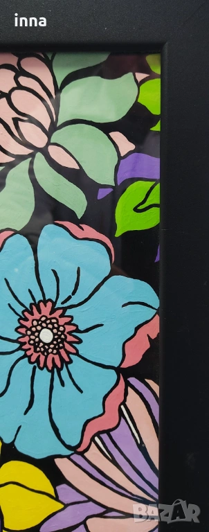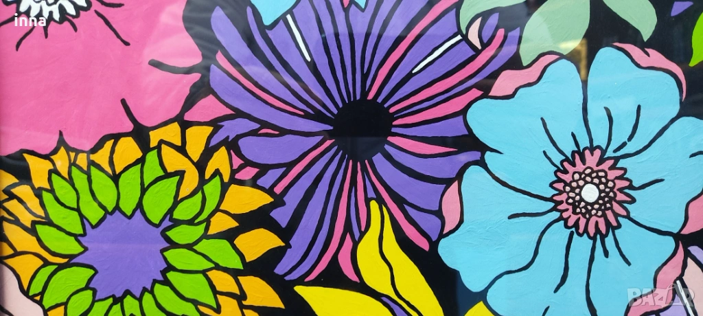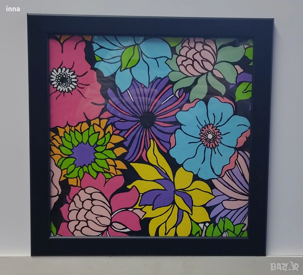Свежа, жизнерадостна пролетна картина – цветя. Рисувана с усет за цветовете и съчетанията. Създава настроение и се явява чудесен, лъчезарен акцент в стаята, офиса или другаде. Професионално рамкирана, под стъкло. Без каквито е да е забележки – нова.