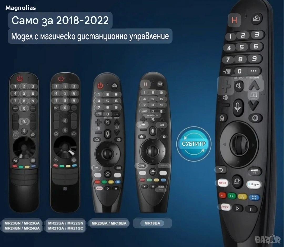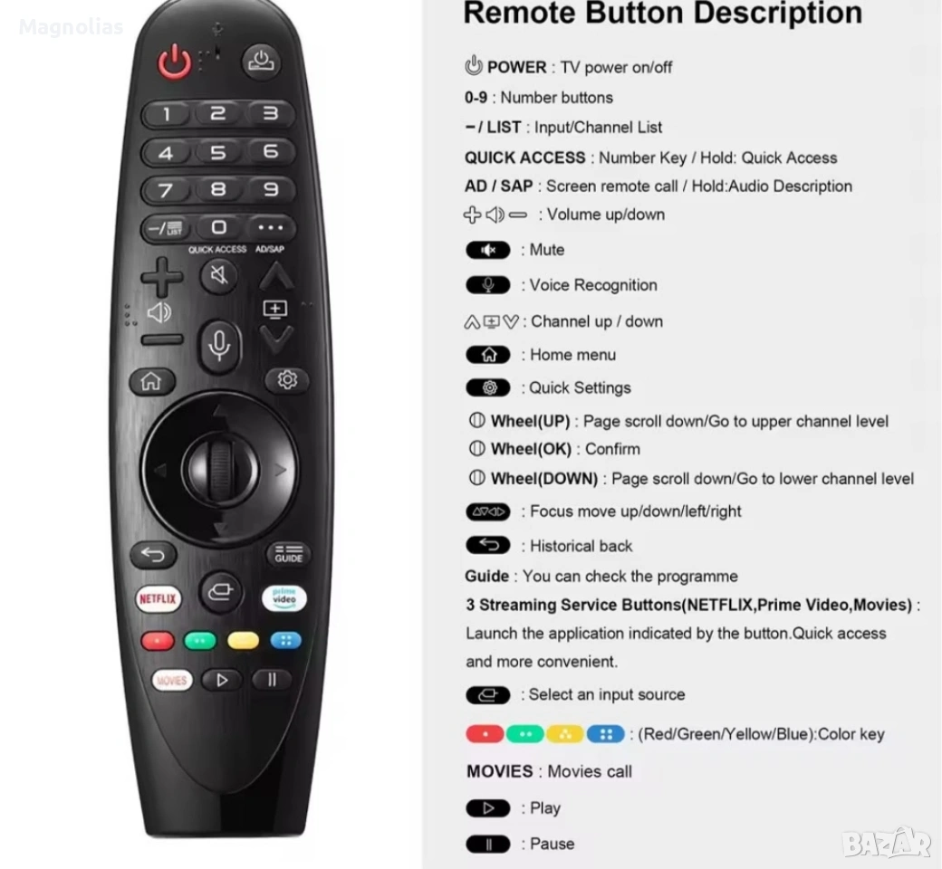 【Най-нов дизайн с 3 бутона за бърз достъп】: Това дистанционно управление LG Magic е с най-нов дизайн с 3 бутона за бърз достъп за Netflix, филми и др. за допълнително удобство. То е същото като вашето старо оригинално дистанционно управление, независимо от функцията, външния вид, размера на бутоните и др. Перфектното решение за подмяна на старо или счупено дистанционно за телевизор.