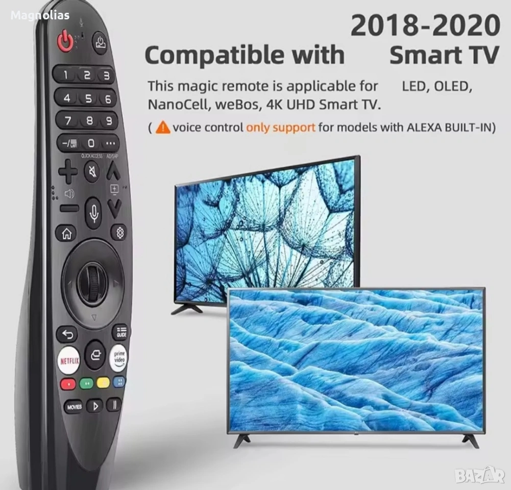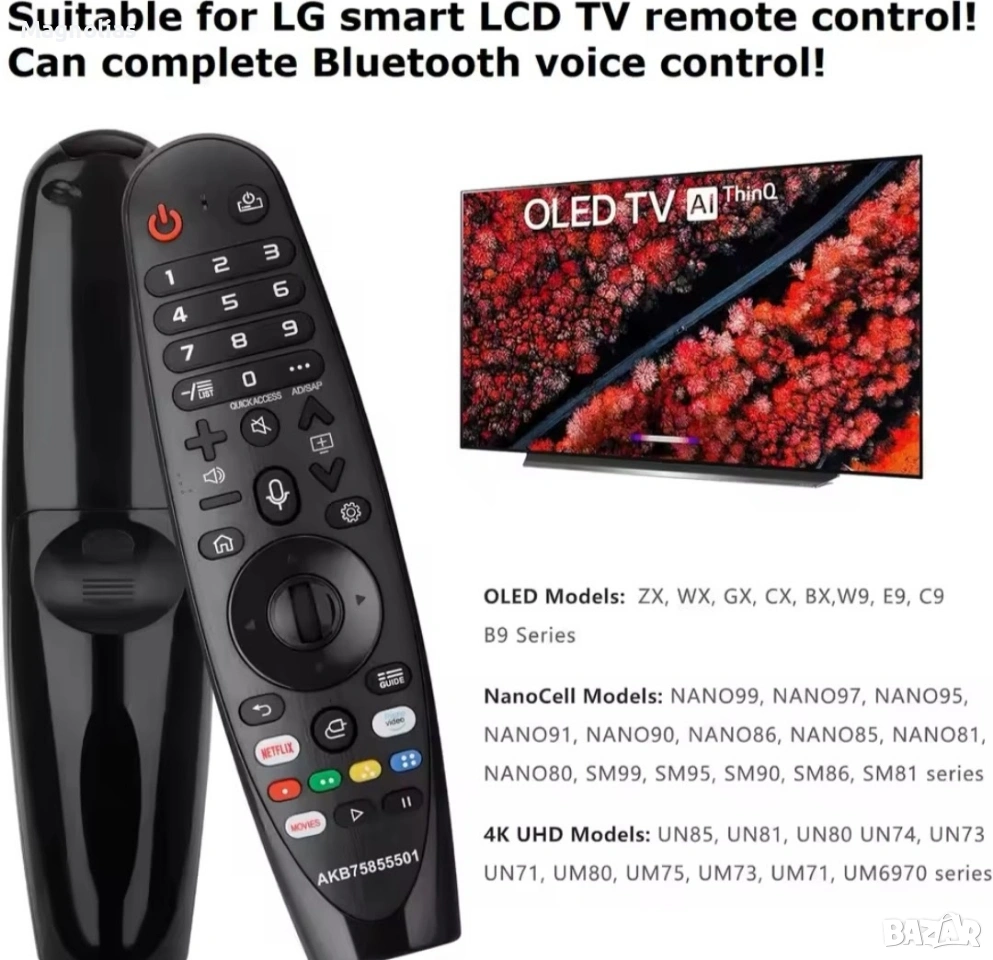 магическото дистанционно за LG】: Това дистанционно за LG телевизор е специално проектирано за смарт телевизори LG и е съвместимо с моделите смарт телевизори LG OLED UHD NanoCell 4K 8K Webos: ZX, WX, GX, CX, BX, W9, E9, C9, B9, NANO99, NANO97, NANO95, NANO91, NANO90, NANO86, NANO81, NANO80, SM99, SM95, SM90, SM86, SM81, UN85, UN81, UN80 UN74, UN73, UN71, UM80, UM75, UM73, UM71, серия UM6970 и др.