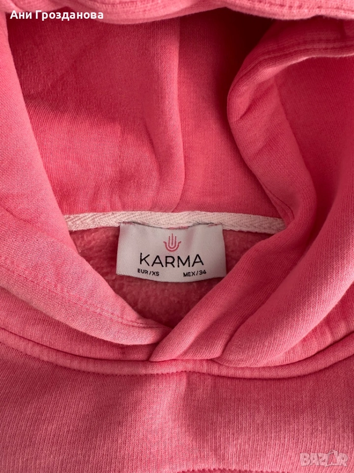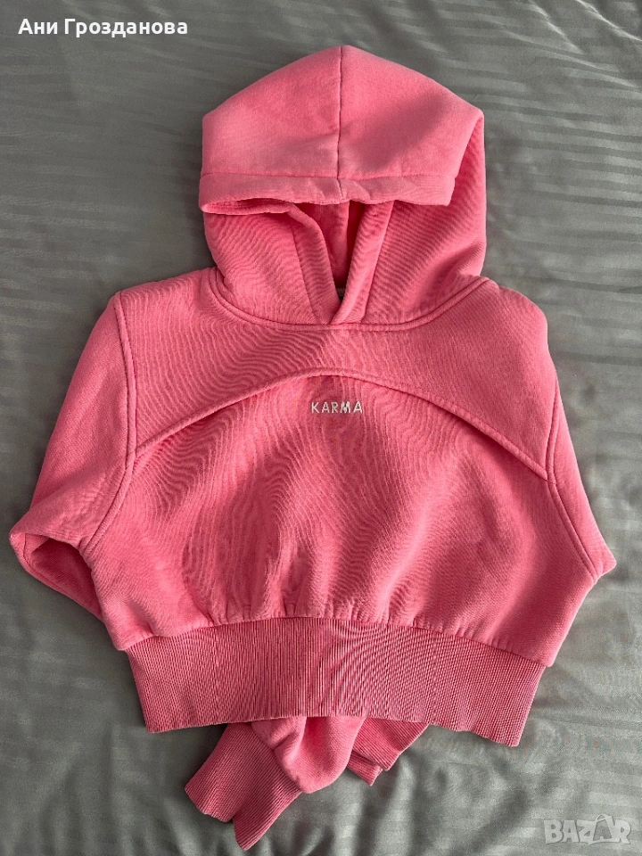 Ватиран спортен екип Karma, подходящ за момиче. Размер XS. Дължина на горнище-45 см,ширина под мишници-43см. Дължина на долнище-93 см. Без забележки.