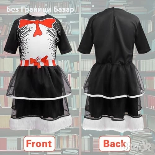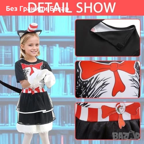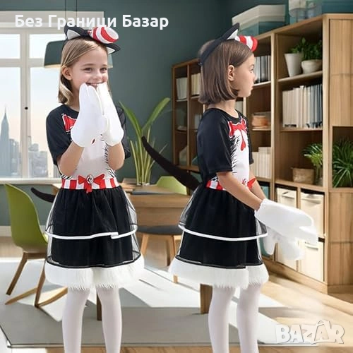 Нов Детски костюм черно коте рокля ушички опашка Хелоуин размер Л